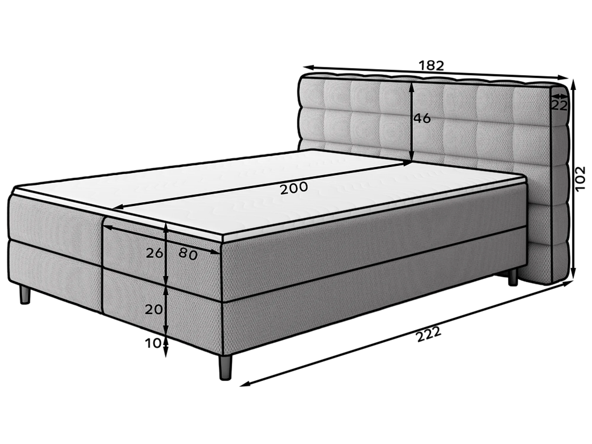 Sommier tapissier Bernex/Sommier tapissier/Matelas et surmatelas/Housse en tissu/Gris