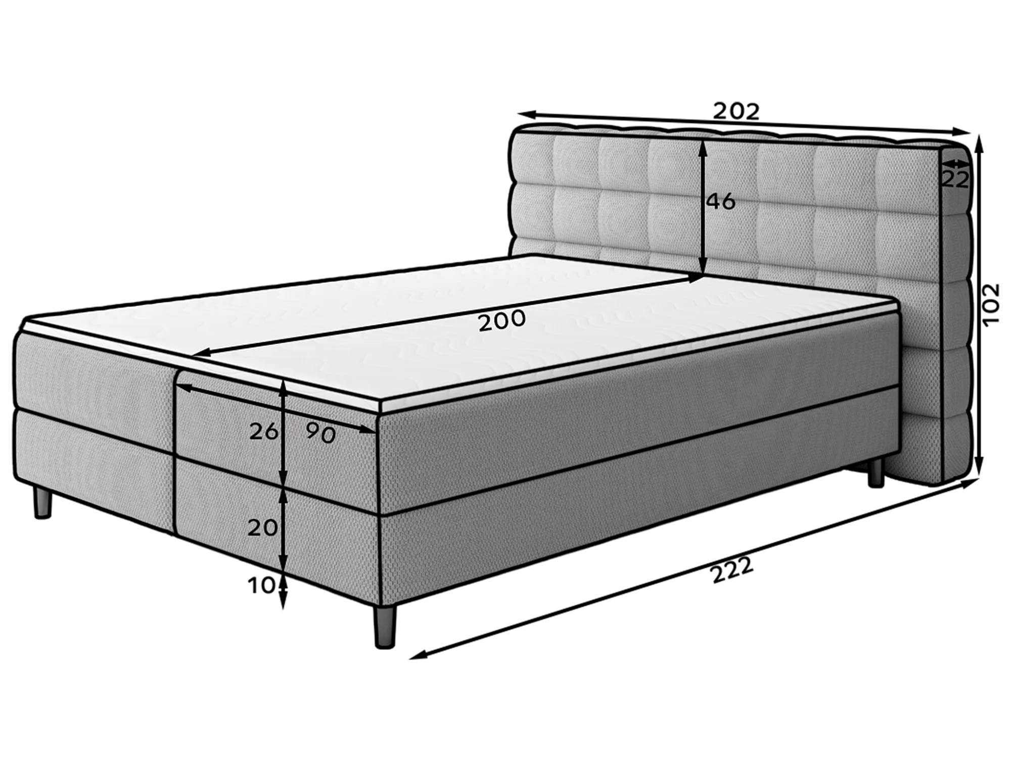 Box Spring Bed Twiser L (180x200)/Tissu-Gris