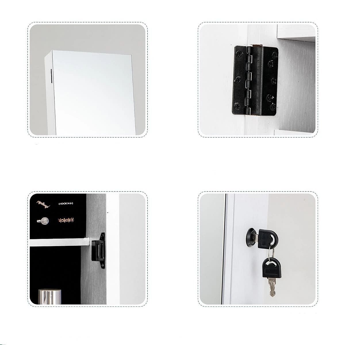 Armoire à Bijoux SucceBuy, avec Miroir Verrouillable, 119,5 cm, Montage Mural/sur Porte, Blanche