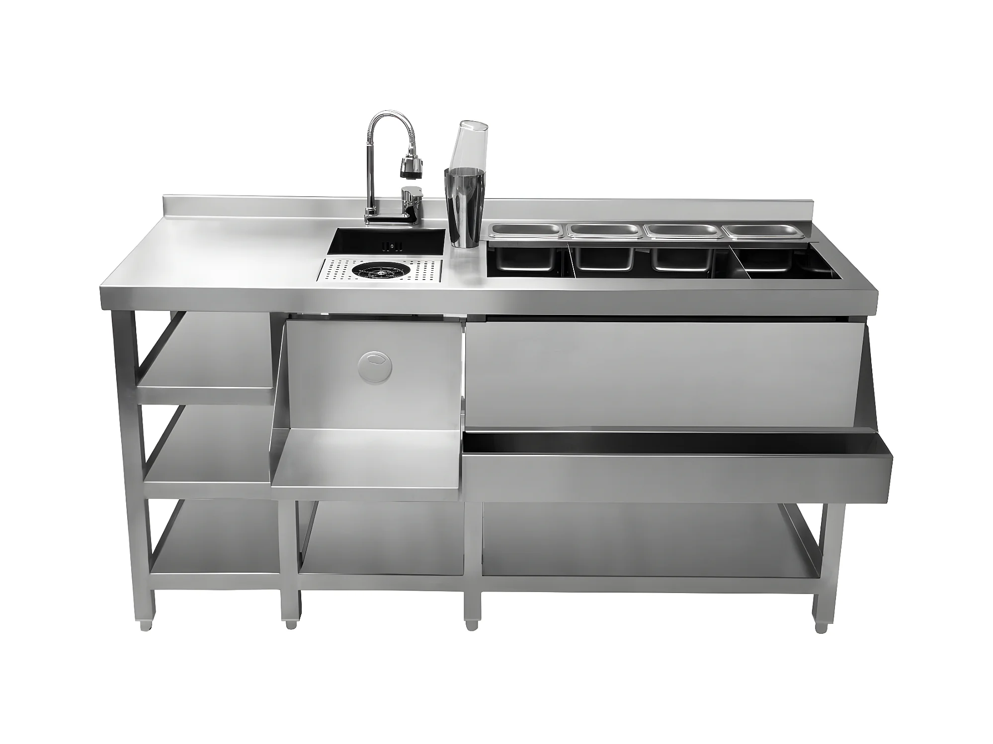Bars à Cocktails Bac de Glace Unité d’Angle Modulaire Acier Inox Banc de Travail