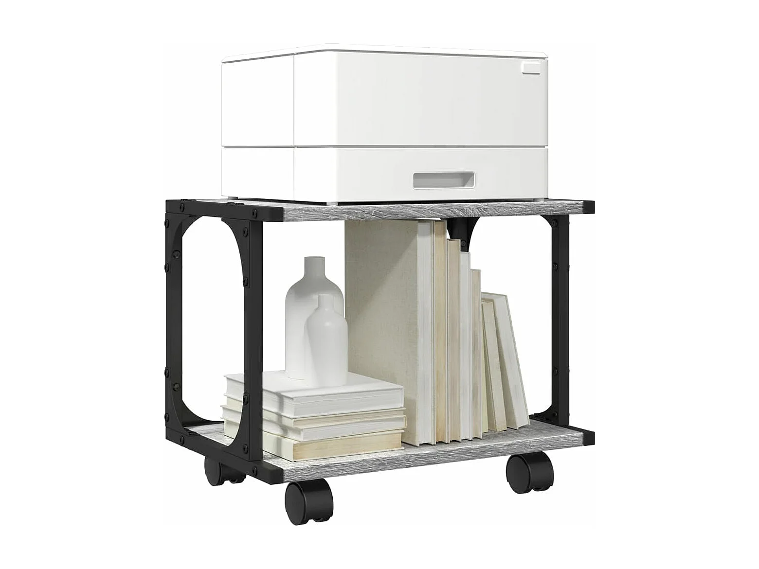 Support d'imprimante avec roulettes gris béton 60x48x74 cm