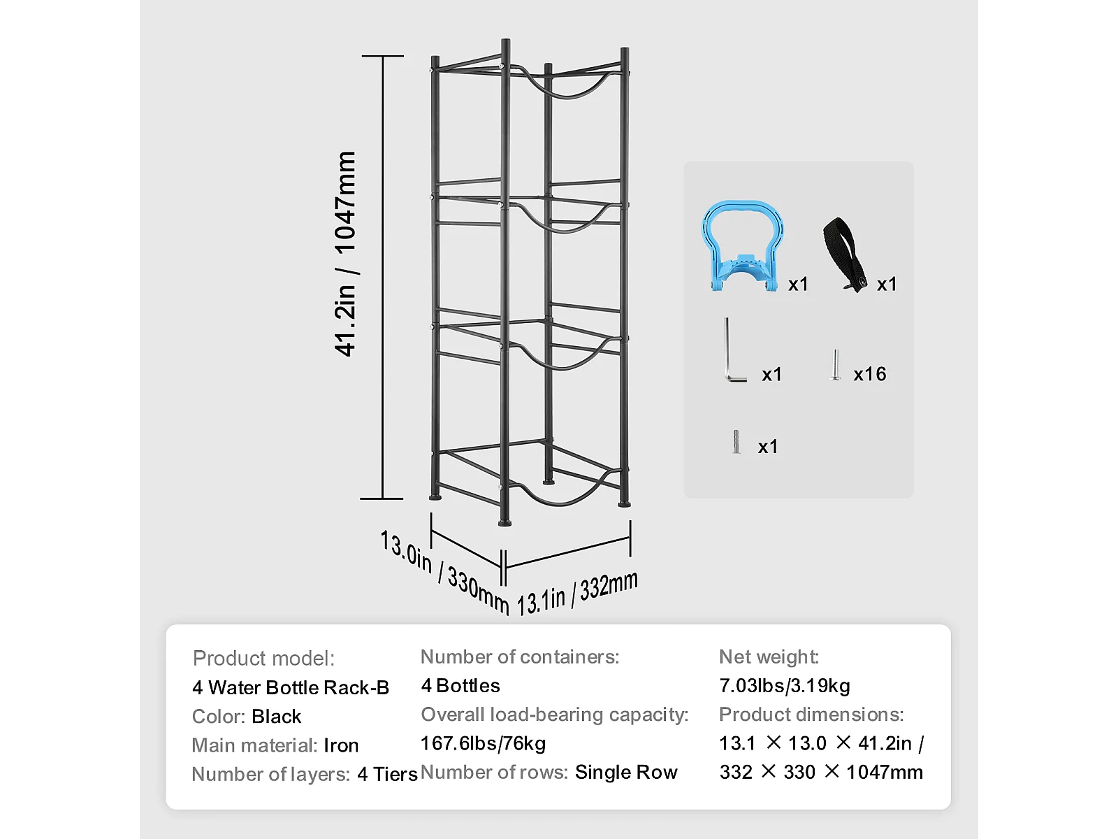 Support pour Carafe à Eau à 4 Niveaux SucceBuy, Support pour 4 Bouteilles, Noir