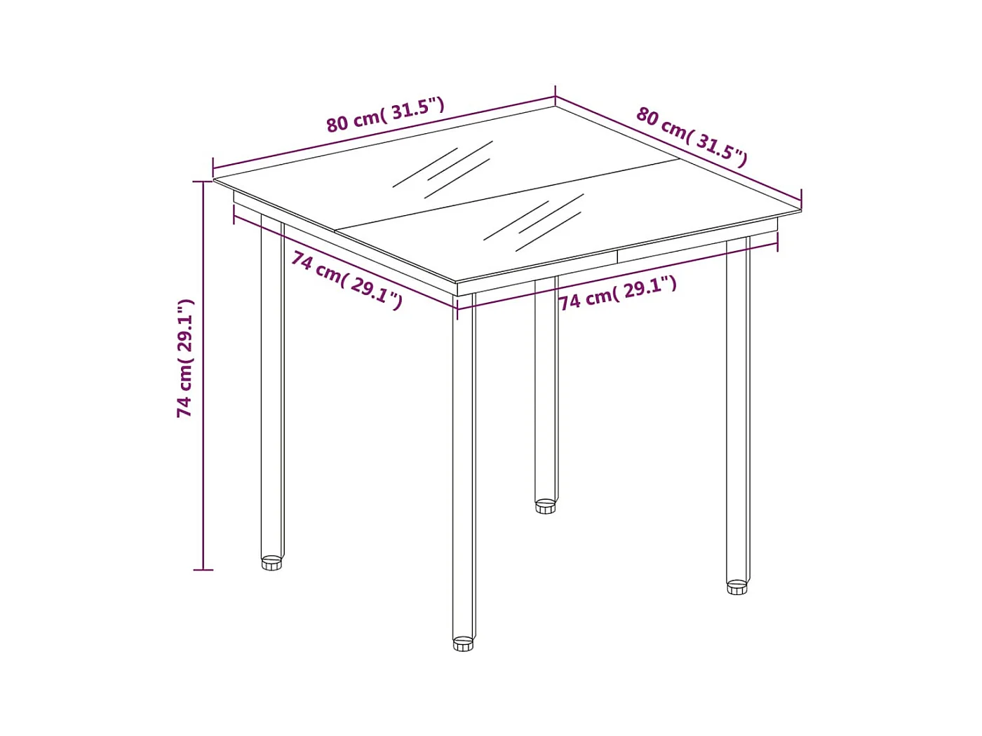 Table à dîner de jardin Noir 80x80x74 cm Acier et verre