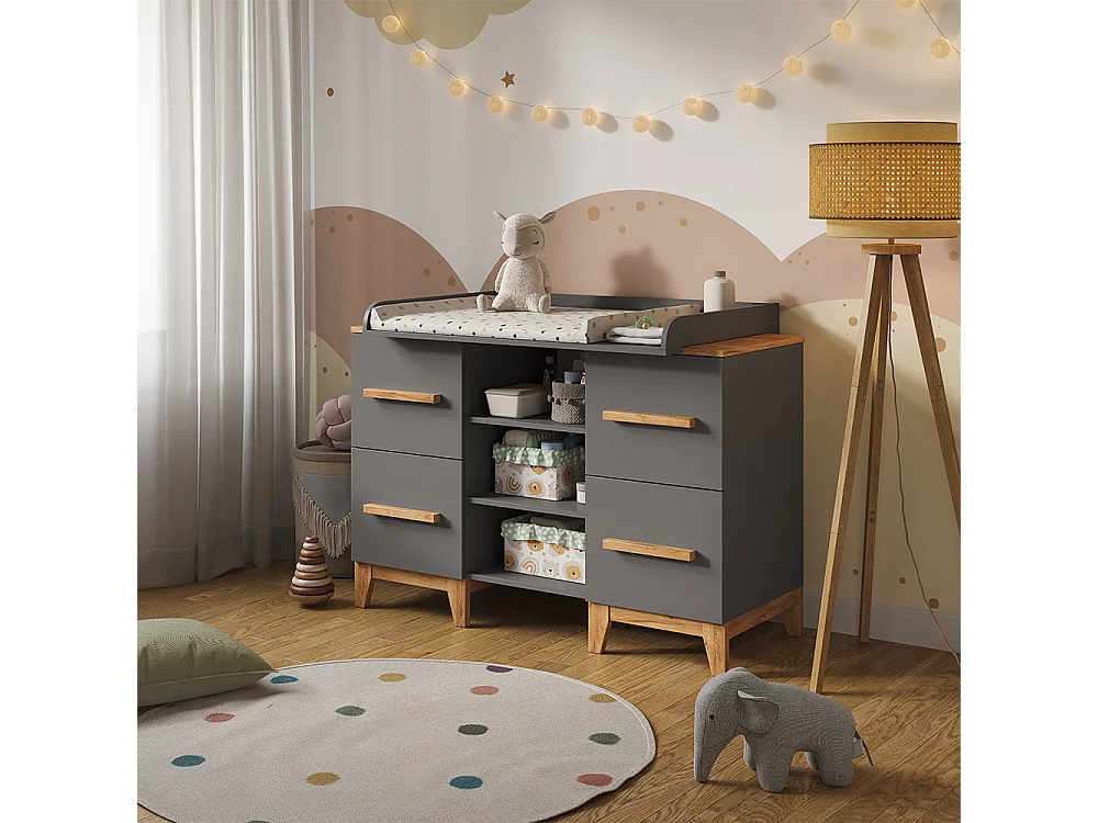 Table à langer gris/artisan 133x70x98 malia