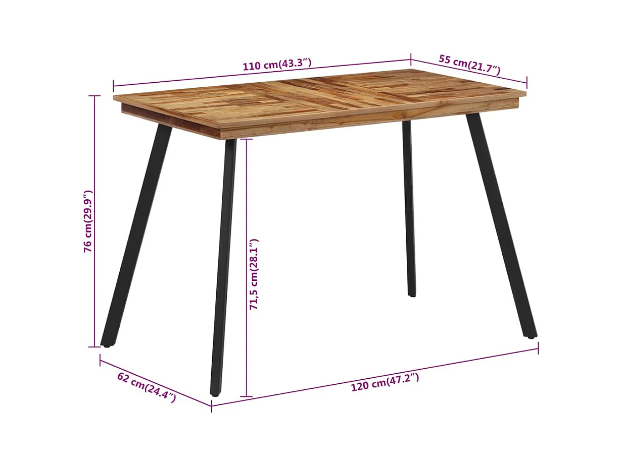 Table à manger 120x60x76 cm Bois massif d'acacia et de manguier