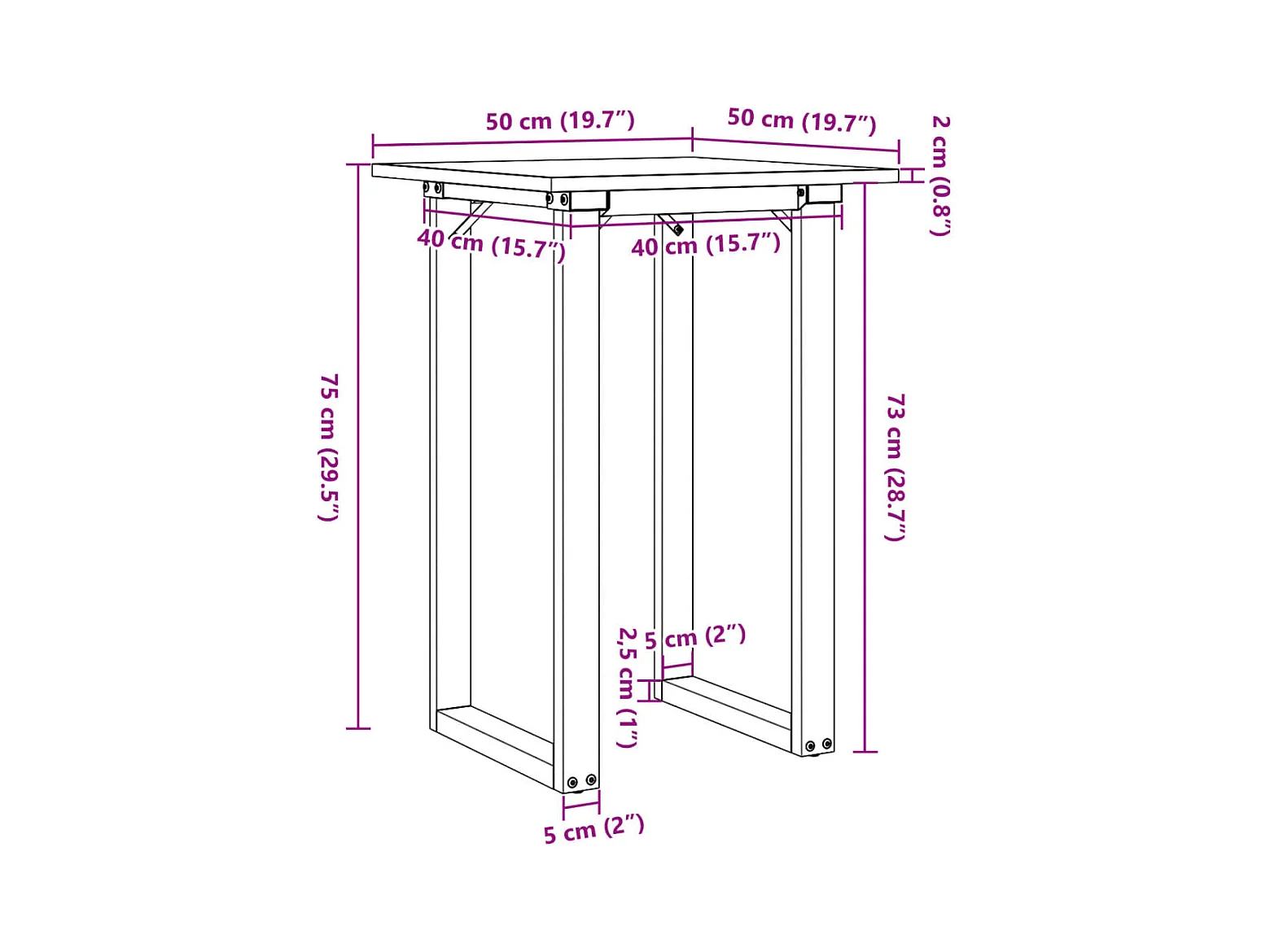 Table à manger cadre en O 50x50x75 cm bois de pin massif acier