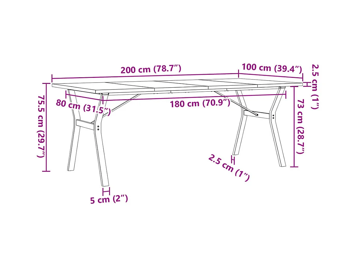 Table à manger cadre en Y 200x100x75,5 cm bois pin massif acier