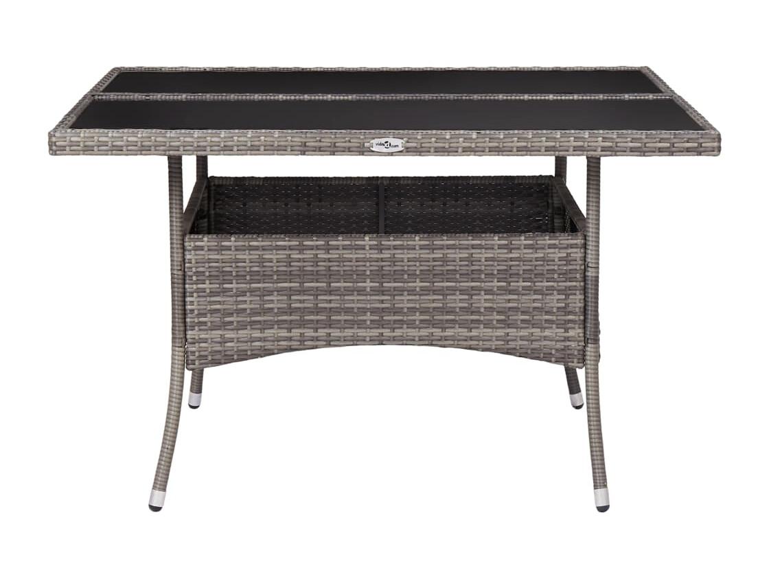 Table de jardin dessus en verre gris 80x80x75 cm résine tressée