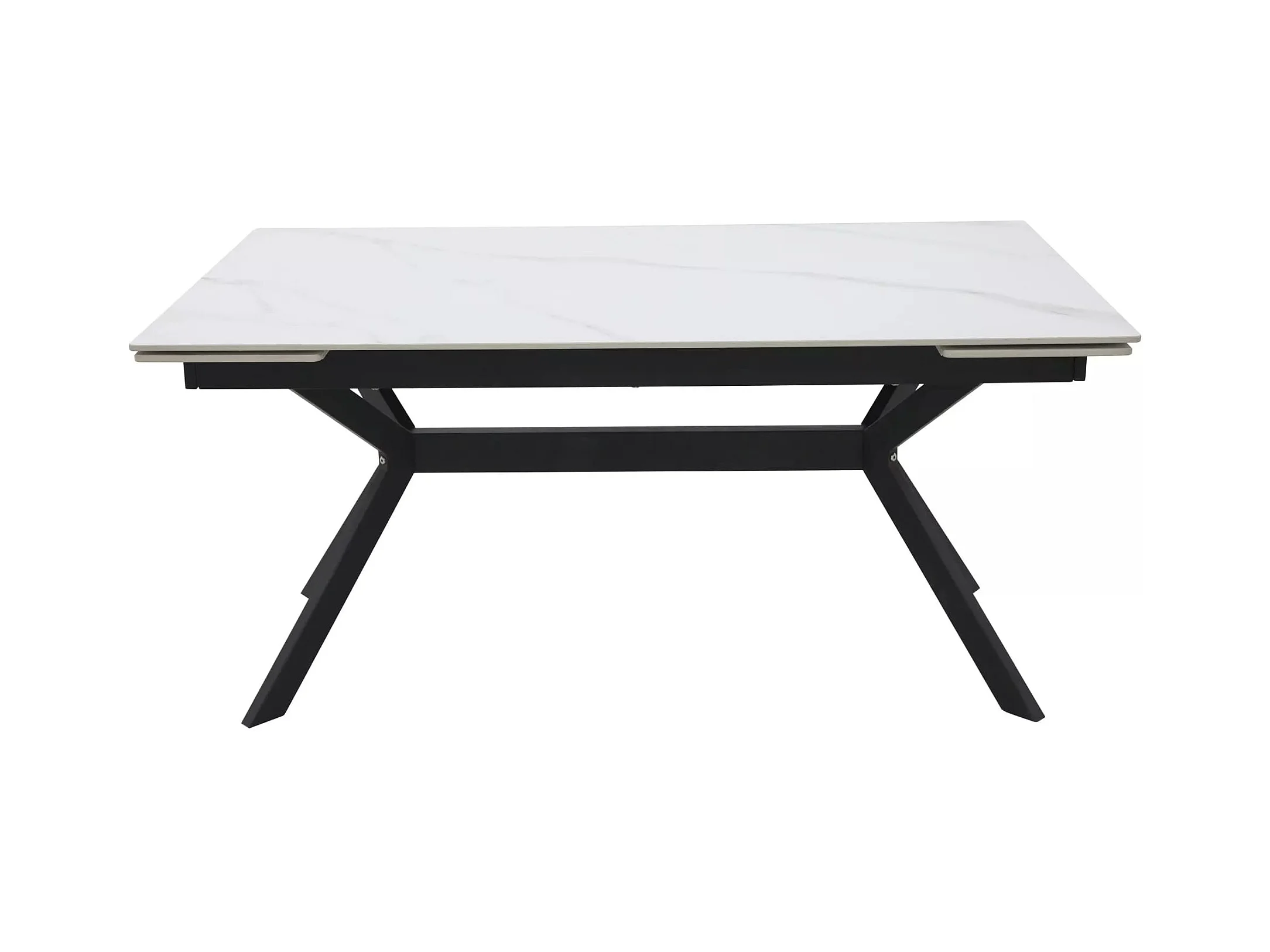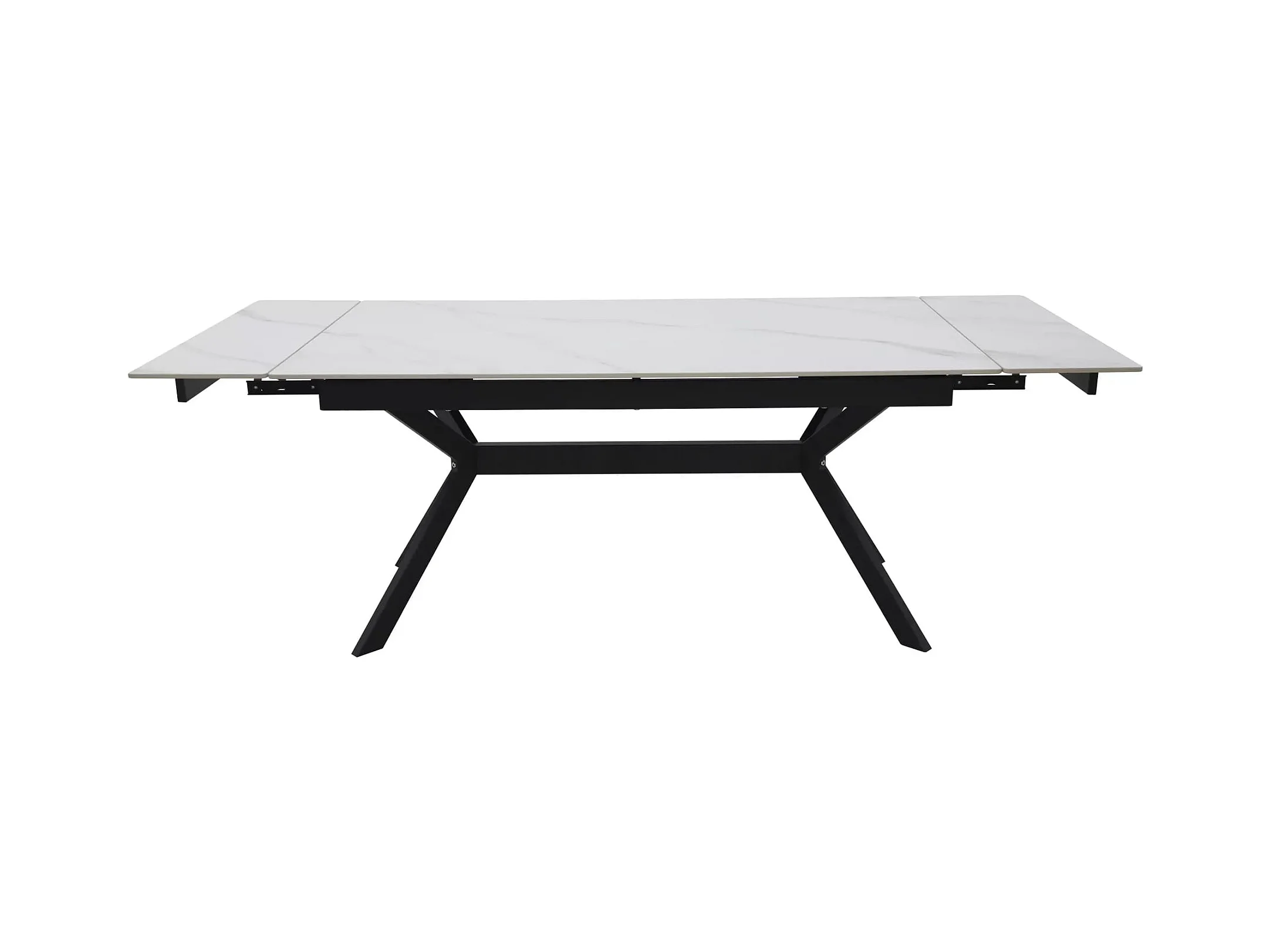 Table en céramique blanche, piètement en métal noir, extensible 120x88-180x88 cm - BONIFACIO
