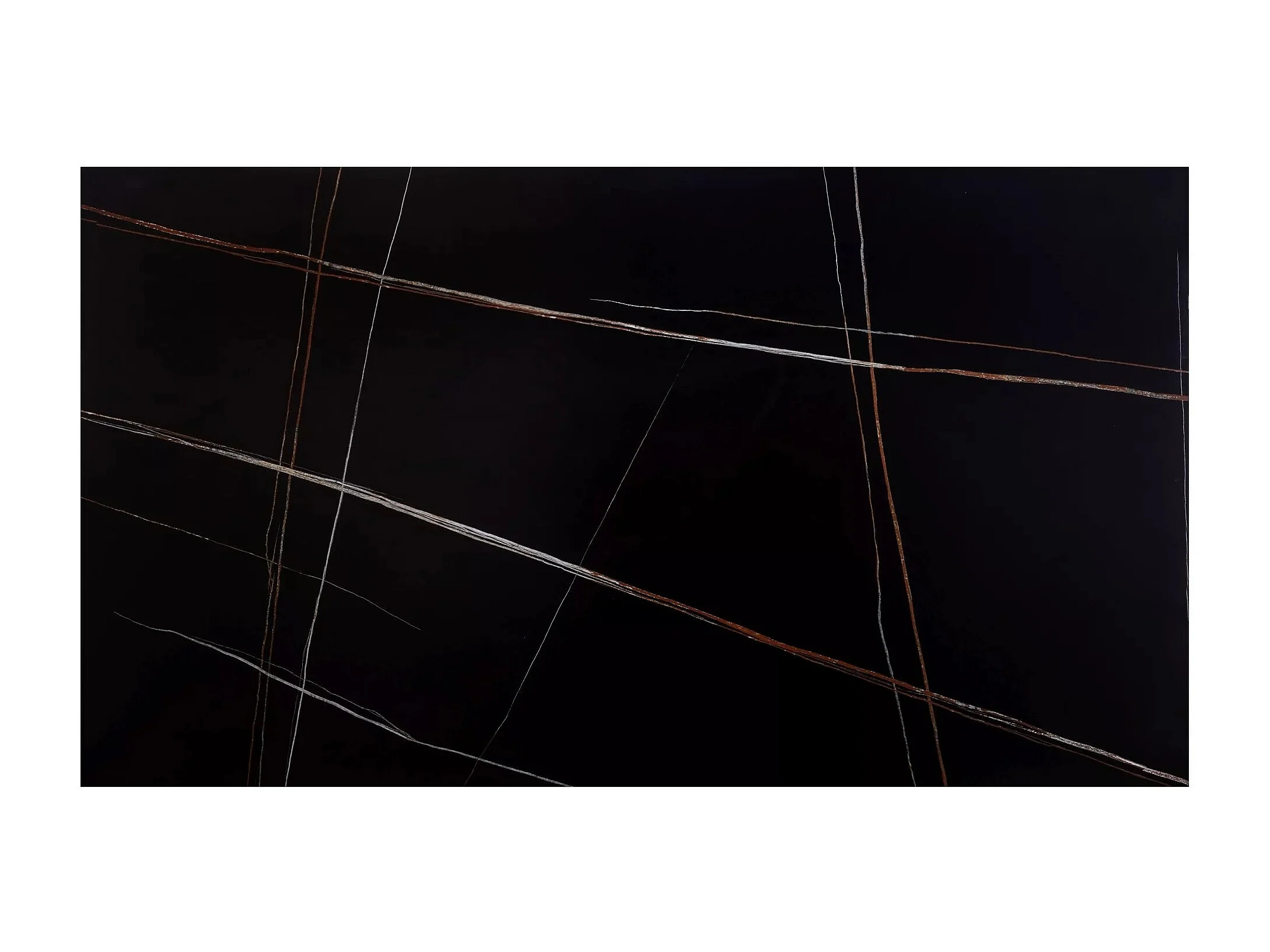 Table en céramique noire, piètement en métal noir, extensible 140x90 - 200x90 cm - BONIFACIO