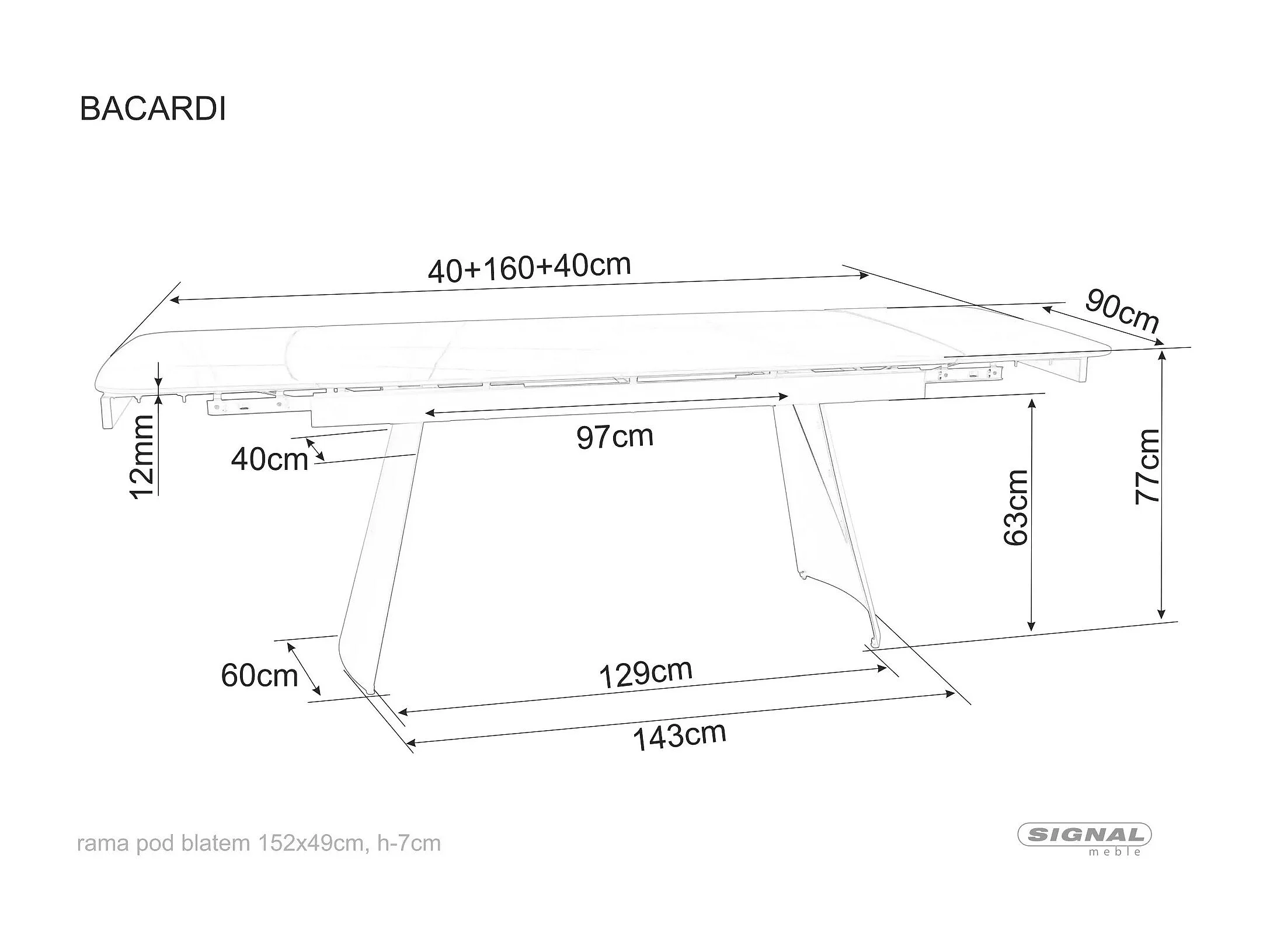 Table de salle à manger Bacardi 90x160-240/Céramique et métal/Extensible/Noire