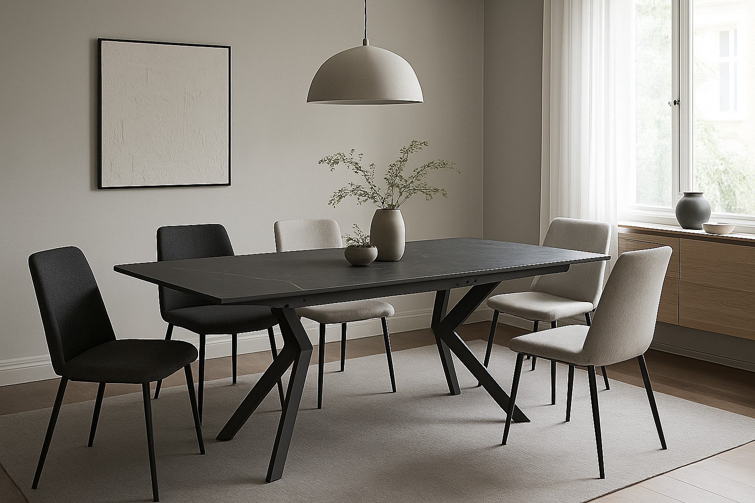Table à manger Norton/Céramique/Métal/Extensible/Noir