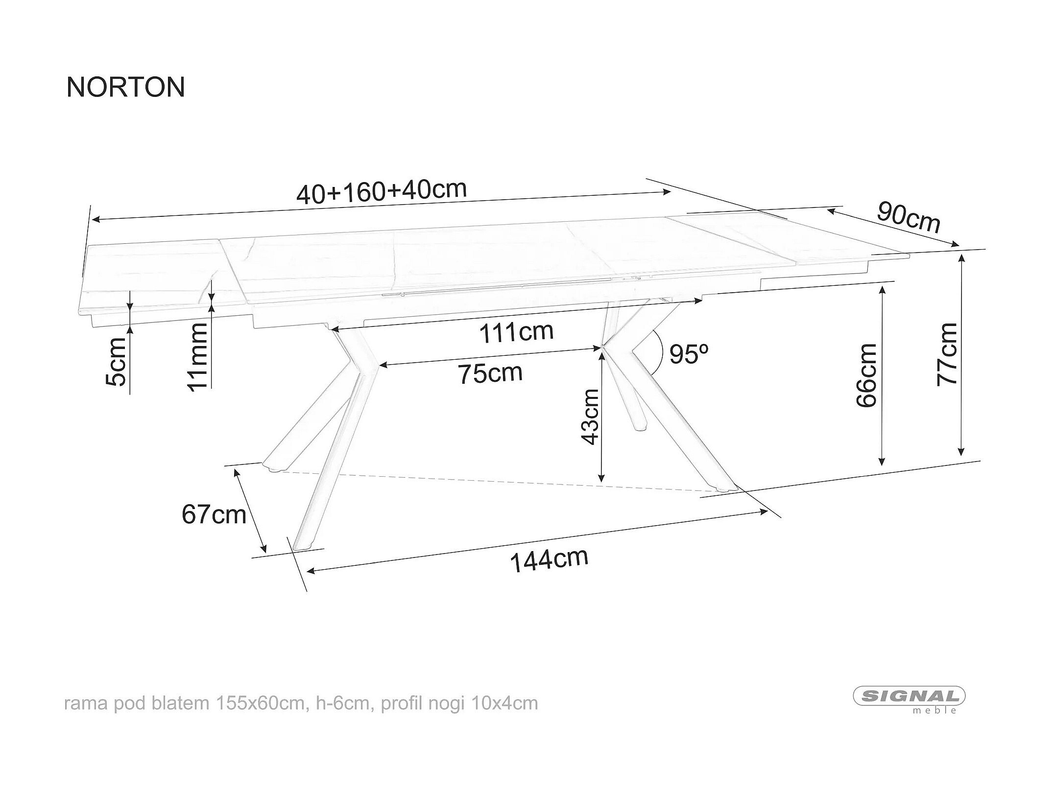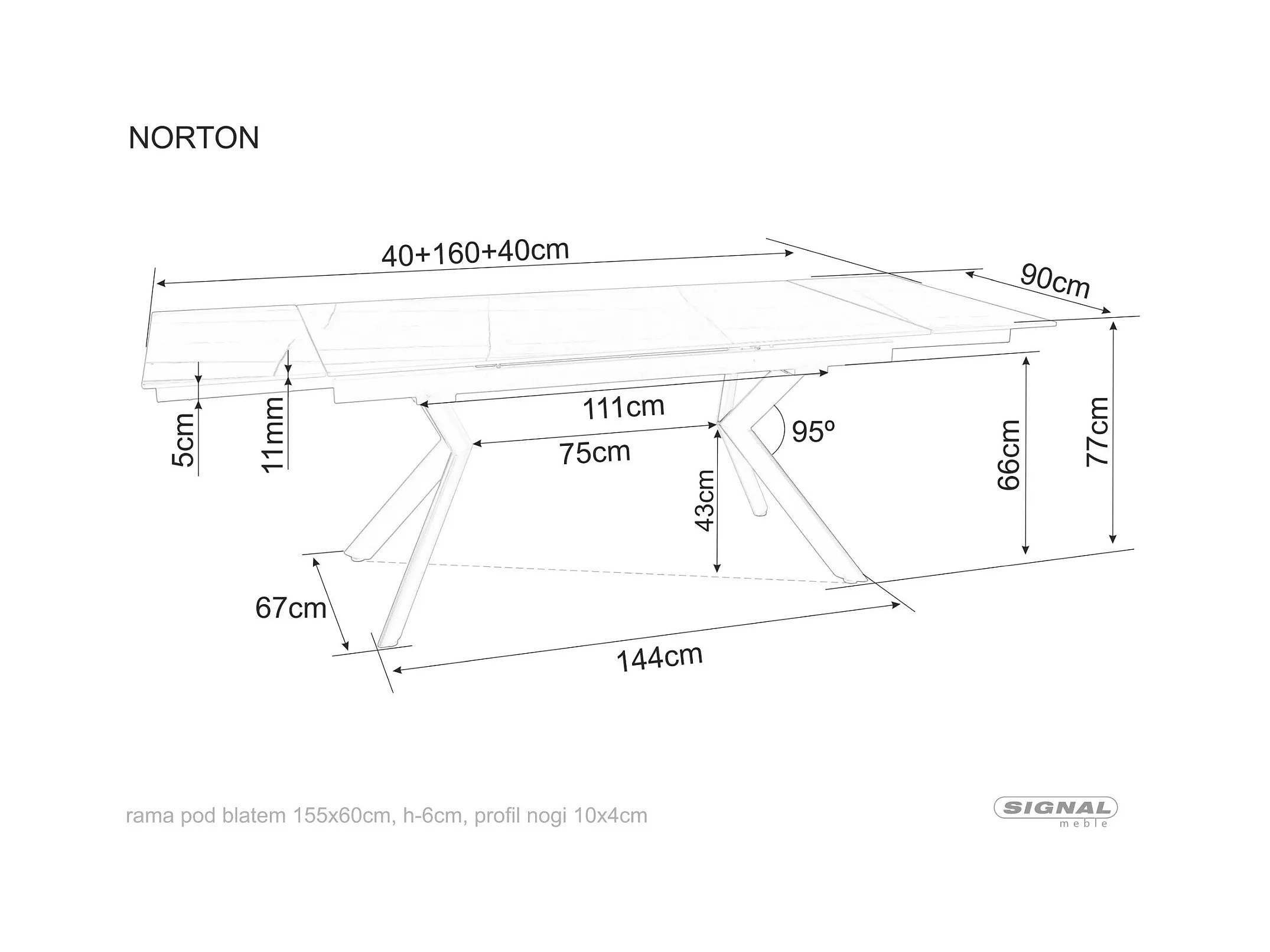 Table à manger Norton/Céramique/Métal/Extensible/Noir et Beige