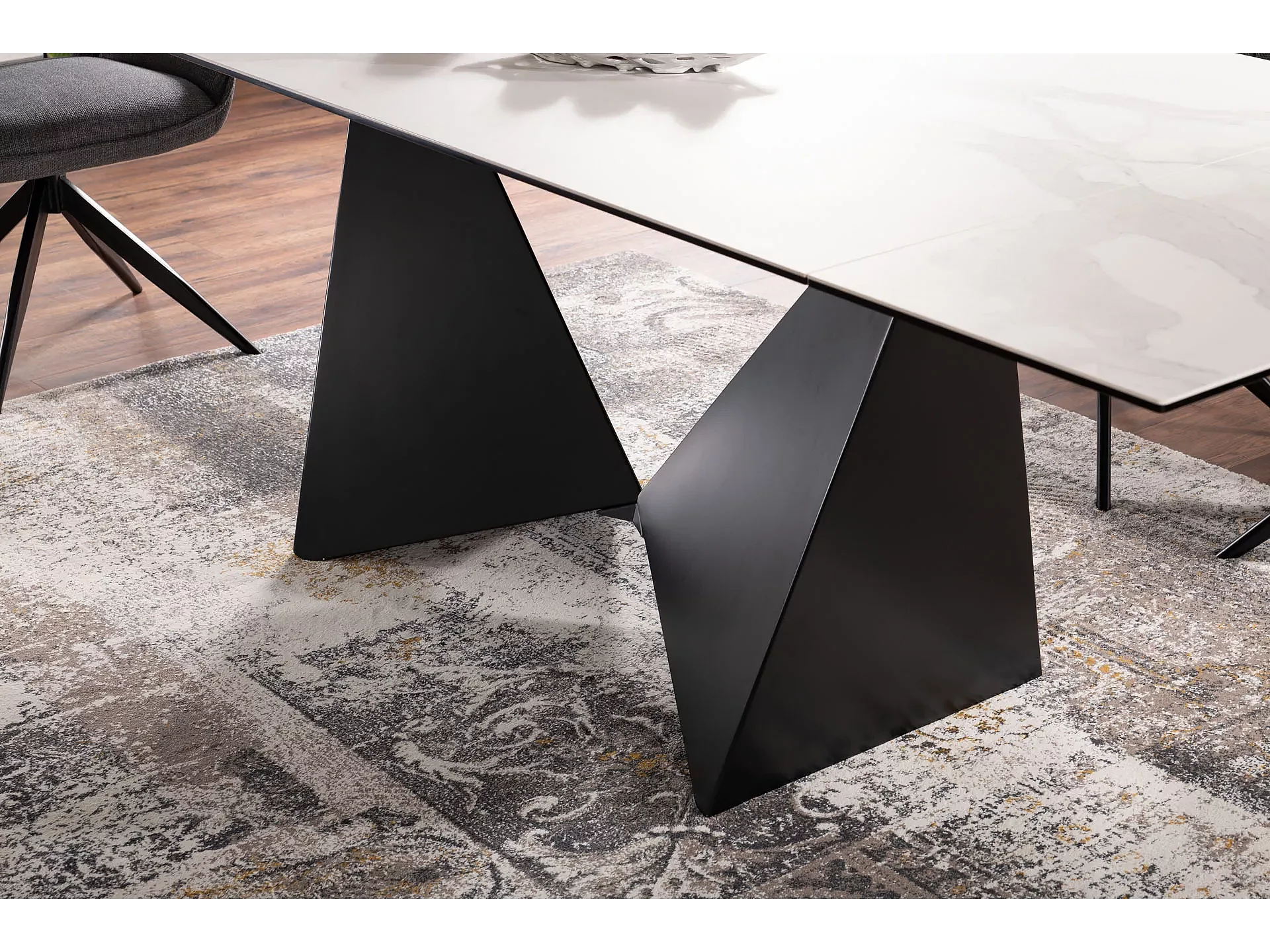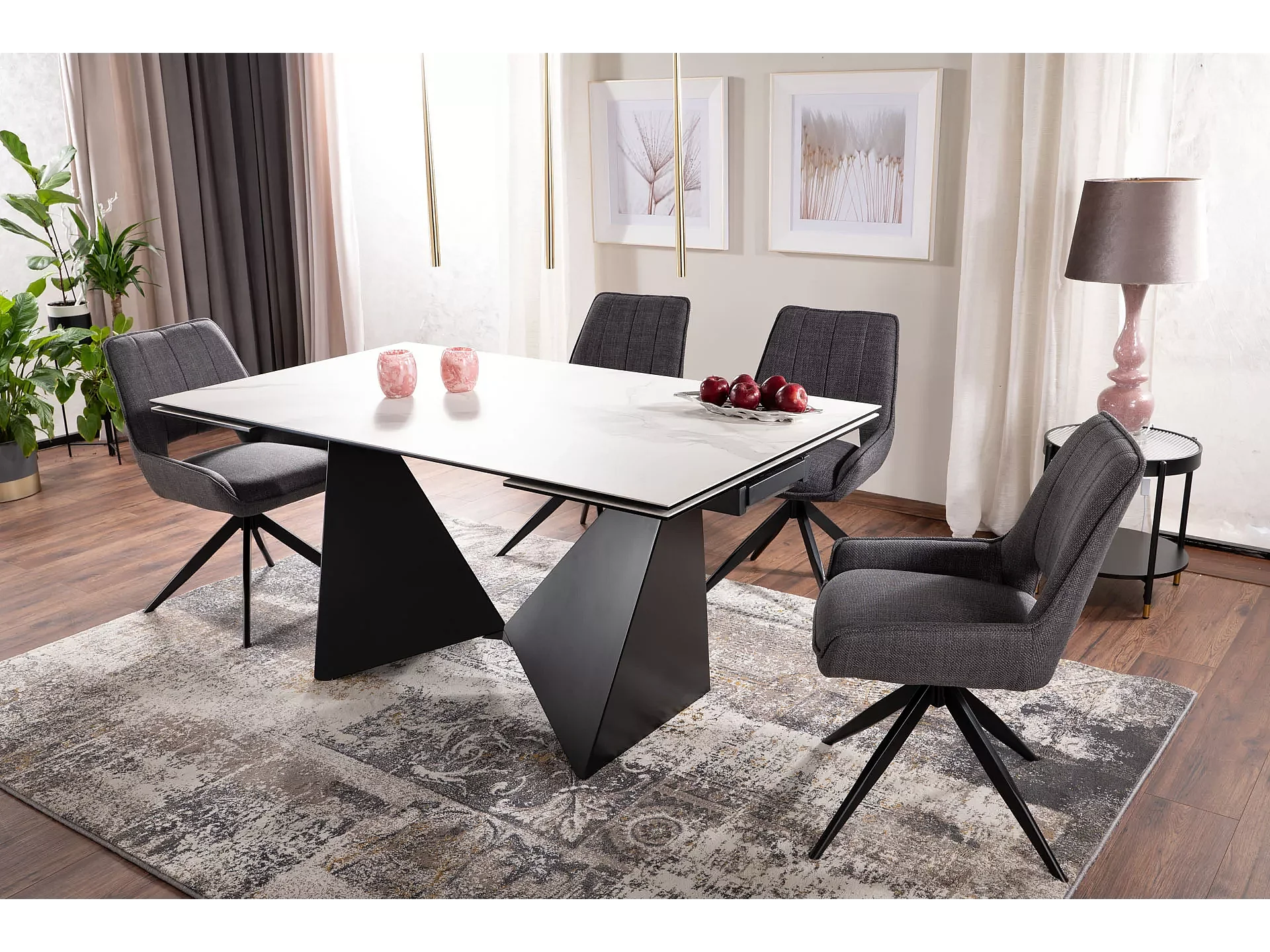 Table à manger Peterson (90x160-240)/céramique/Blanc&Noir