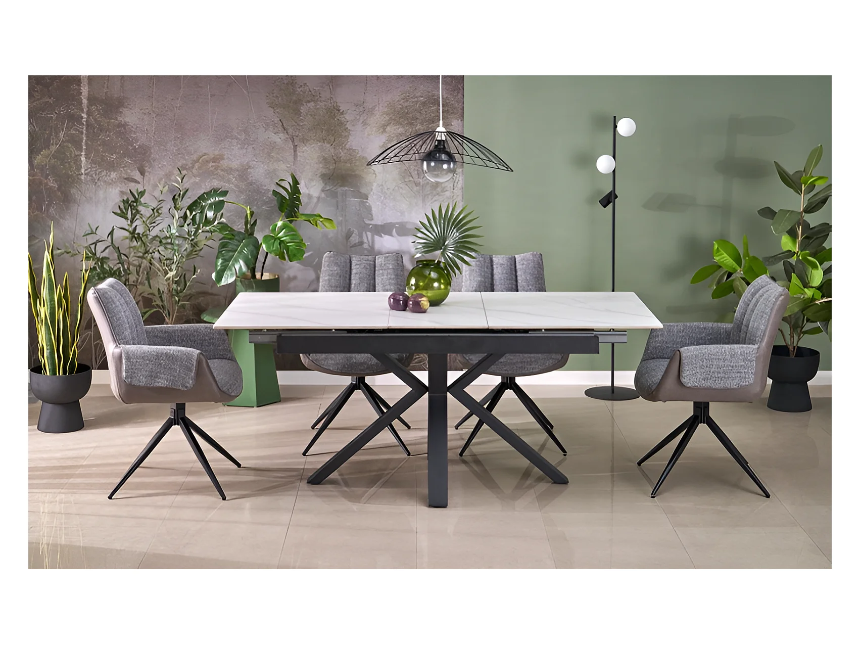 Table à manger Fernando (90x160-240)/Extensible/Céramique/Noir et Gris
