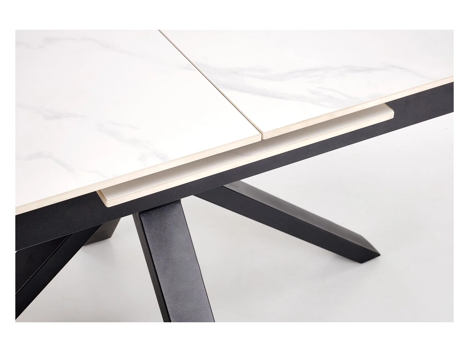 Table en céramique noire, piètement en métal noir, extensible 120x88-180x88 - BONIFACIO