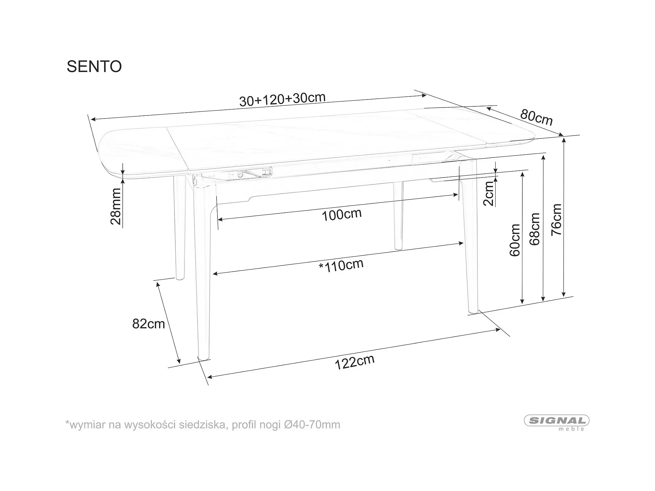 Table à manger Peterson (90x160-240)/céramique/Blanc&Noir