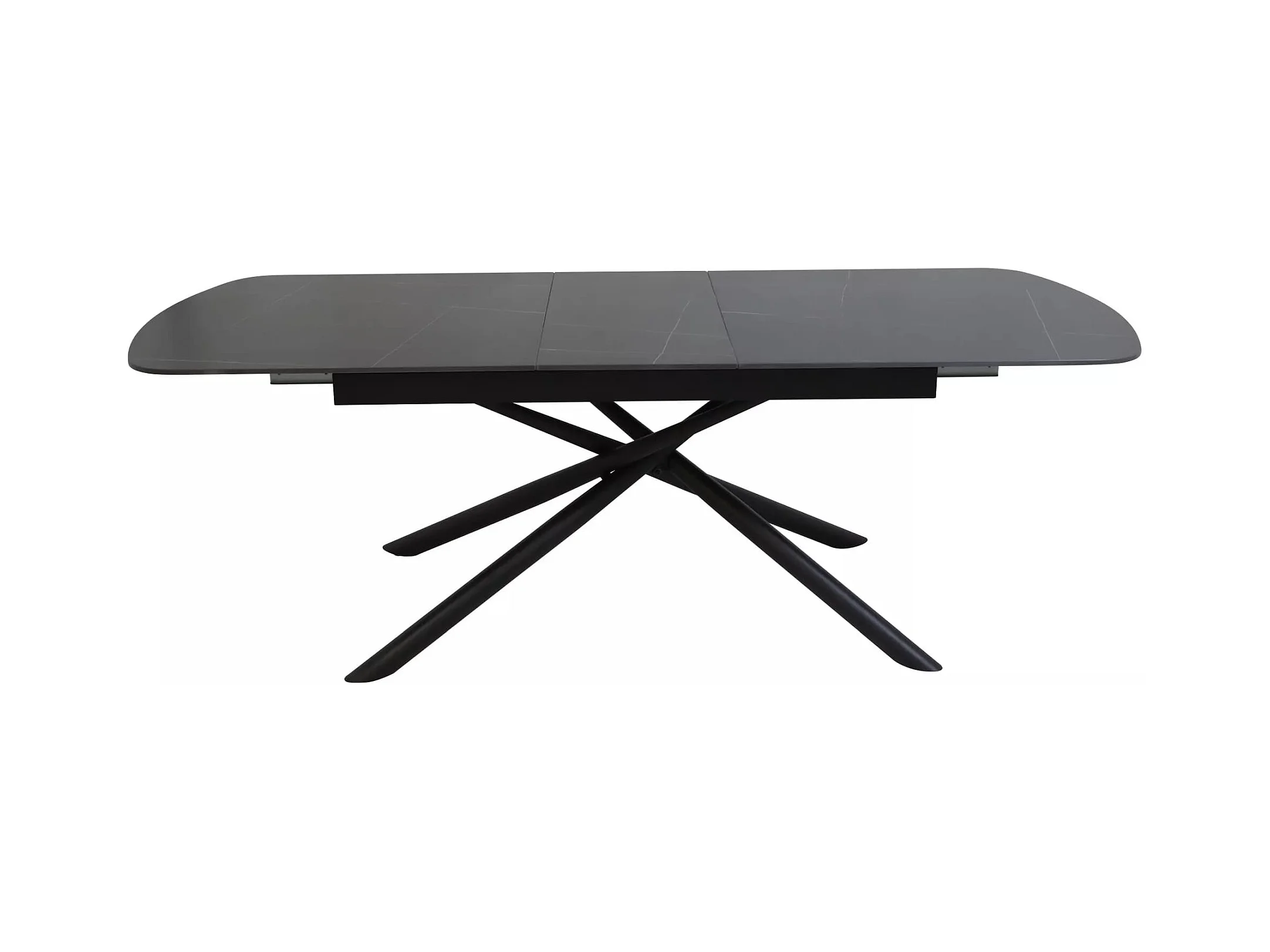 Table en céramique noire, piètement en métal noir, extensible 120x88-180x88 - BONIFACIO