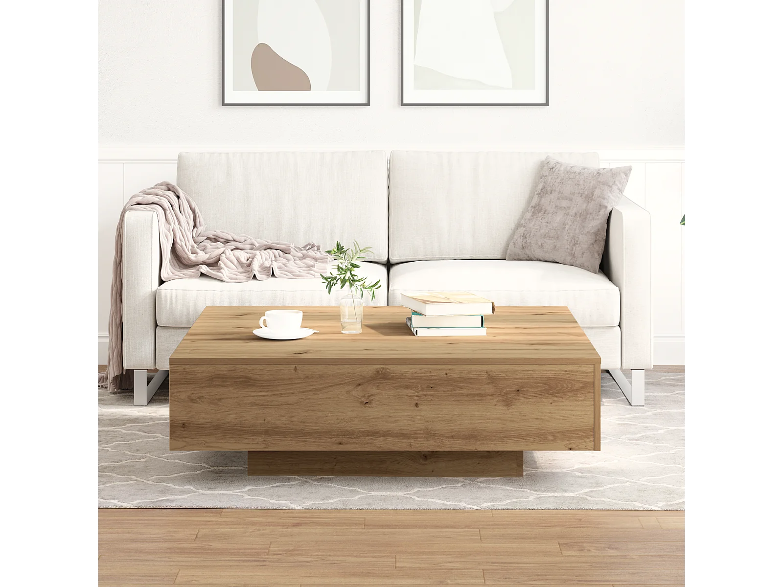 Table basse Artisan en chêne 100x100x31 cm en bois transformé