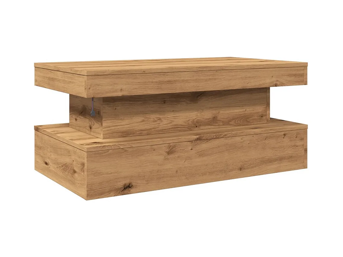 Table basse avec lumières LED chêne artisanal 90x50x40 cm