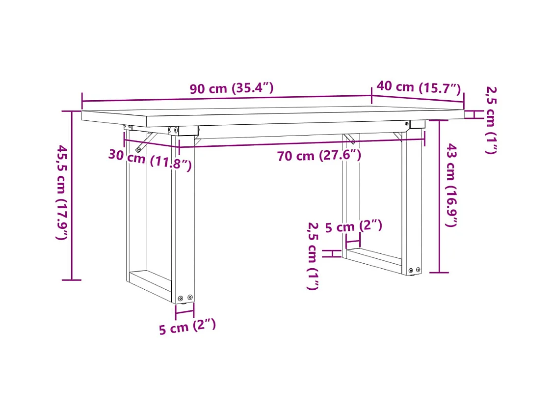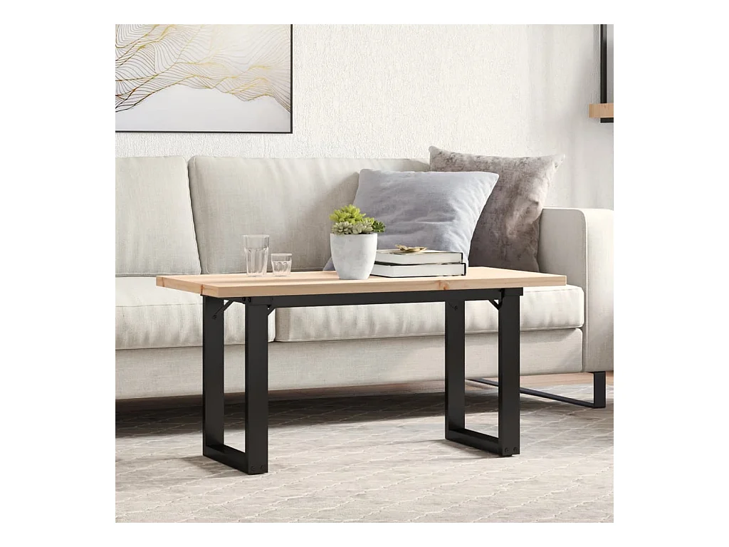 Table basse cadre en O 90x40x45,5cm bois de pin massif et acier