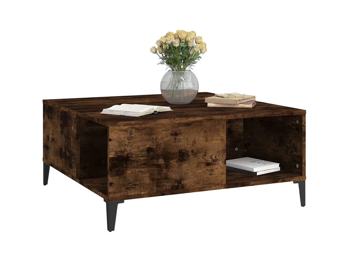 Table basse chêne fumé 80x80x36,5 cm bois d'ingénierie