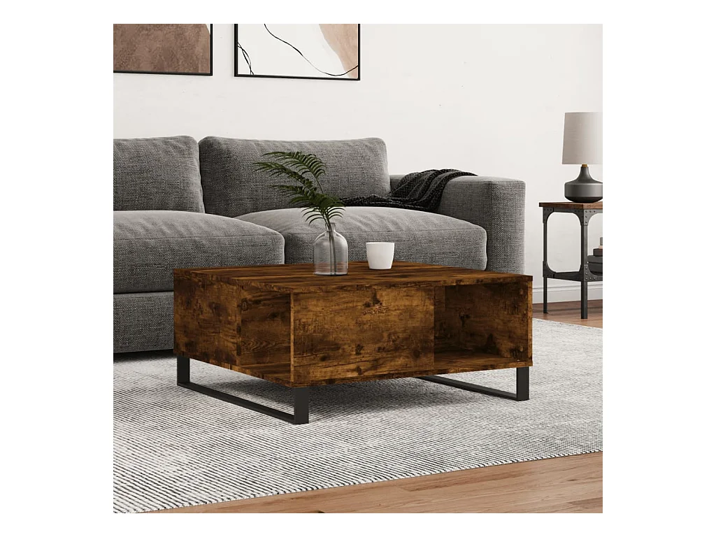 Table basse chêne fumé 80x80x36,5 cm bois d'ingénierie