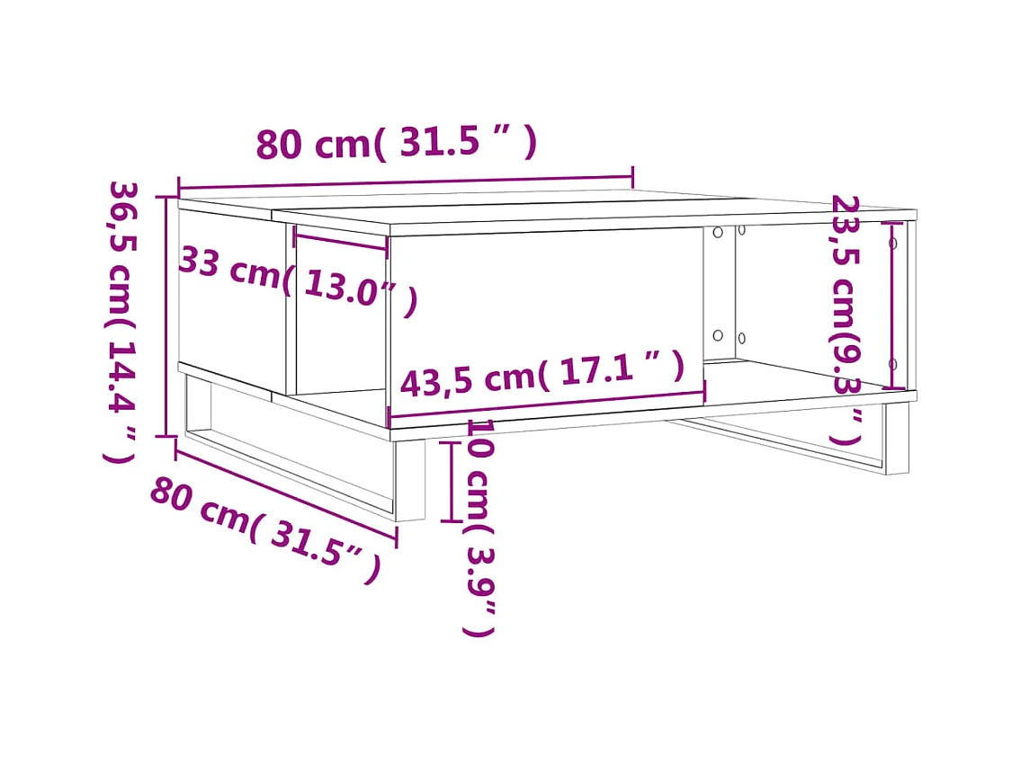 Table basse chêne sonoma 80x80x36,5 cm bois d'ingénierie