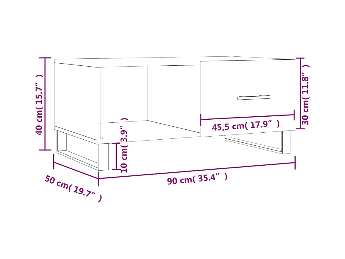 Table basse chêne sonoma 90x50x40 cm bois d'ingénierie