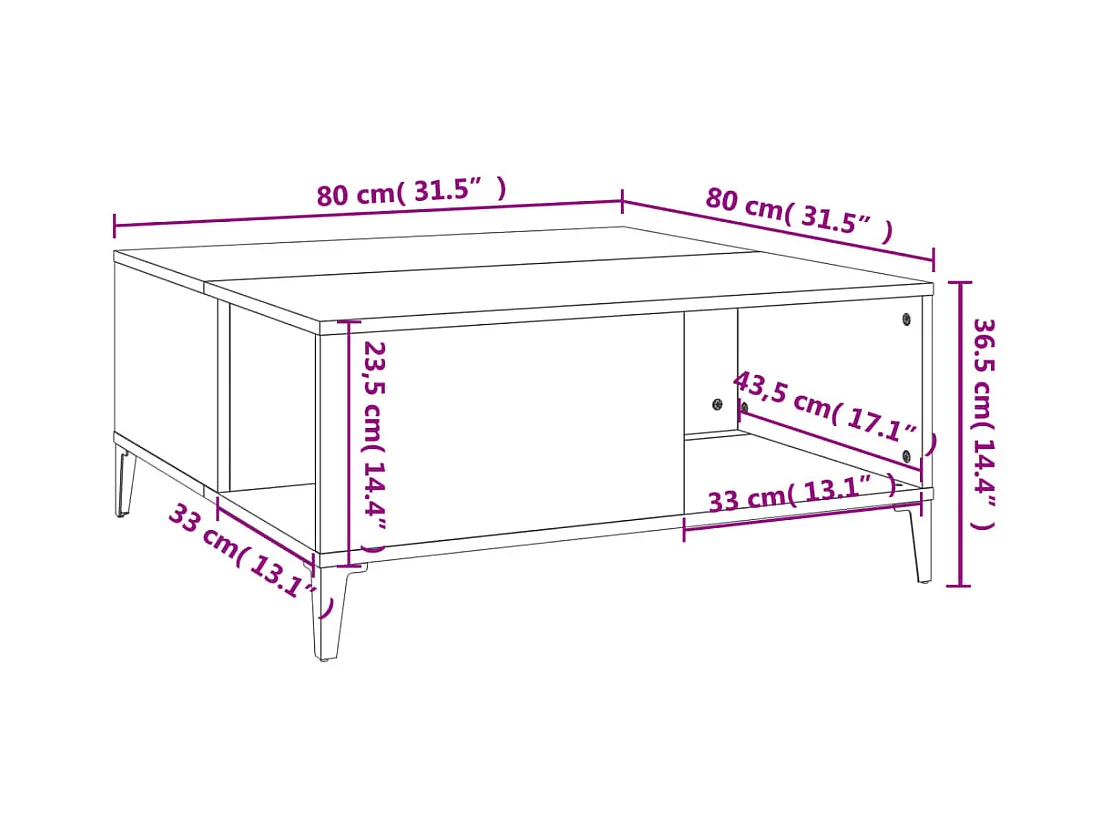 Table basse chêne sonoma 80x80x36,5 cm bois d'ingénierie