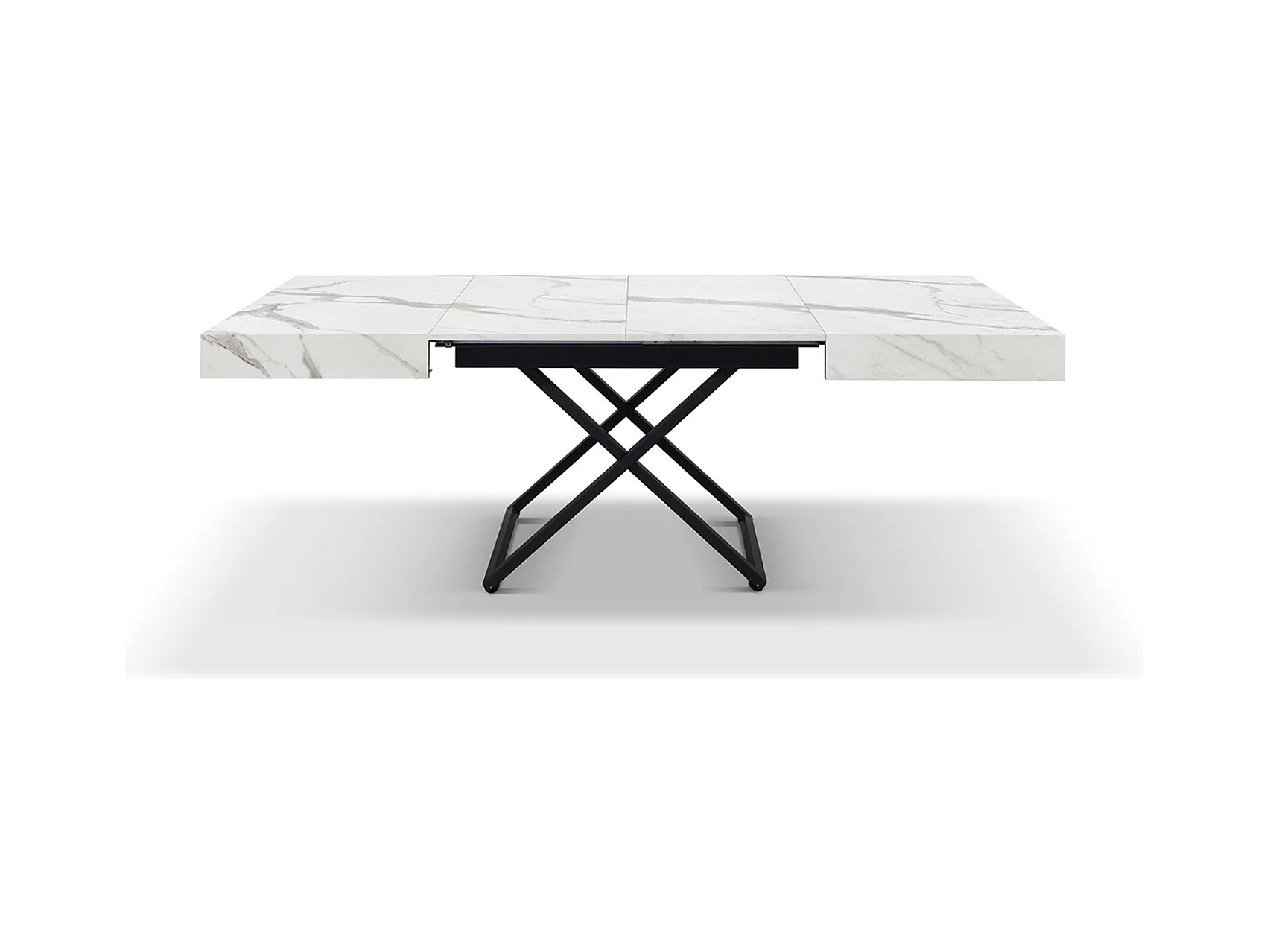 Table basse en bois, finition blanche, base convertible noire, 120x80-220x80 - CAMOGLI