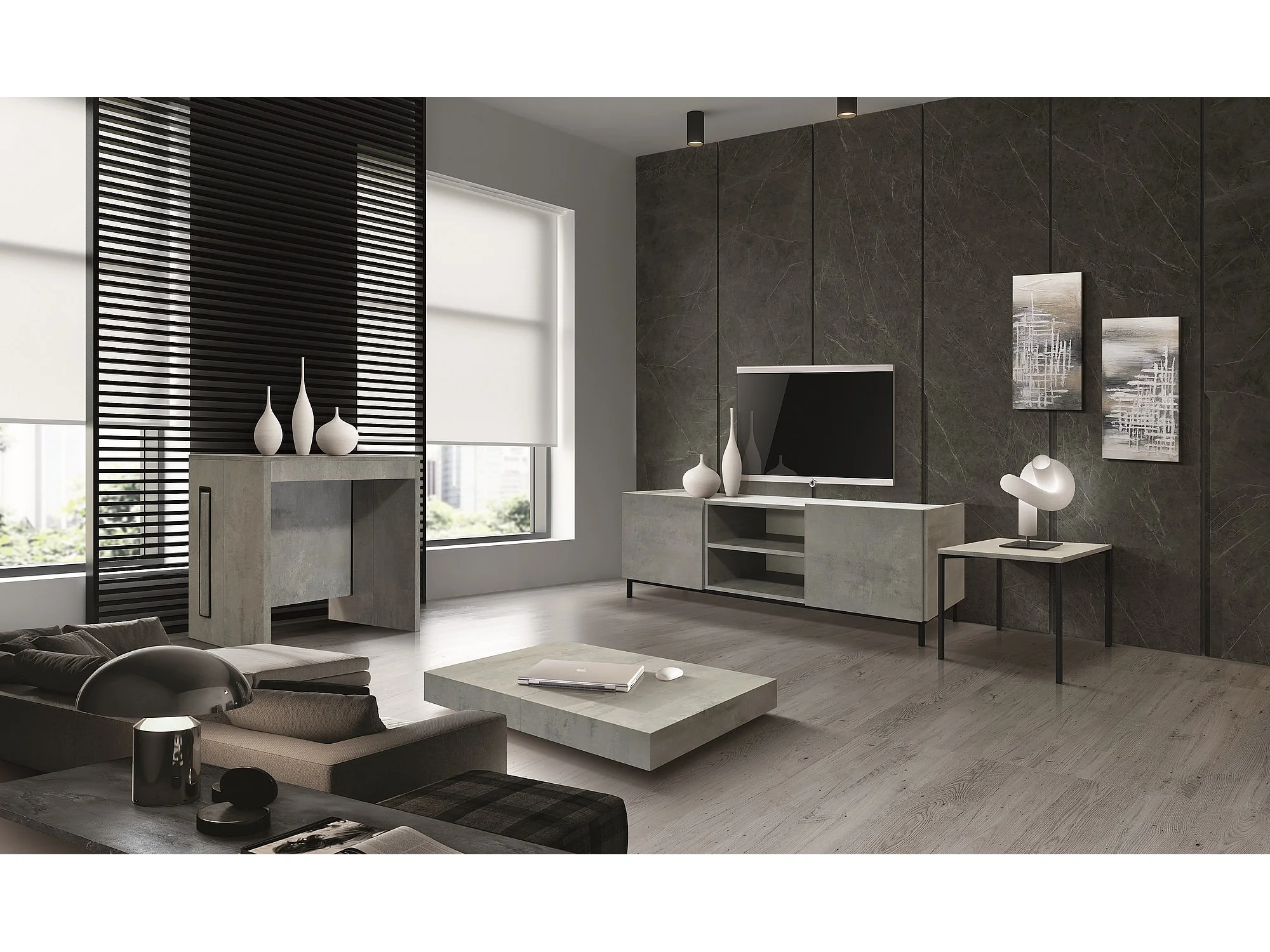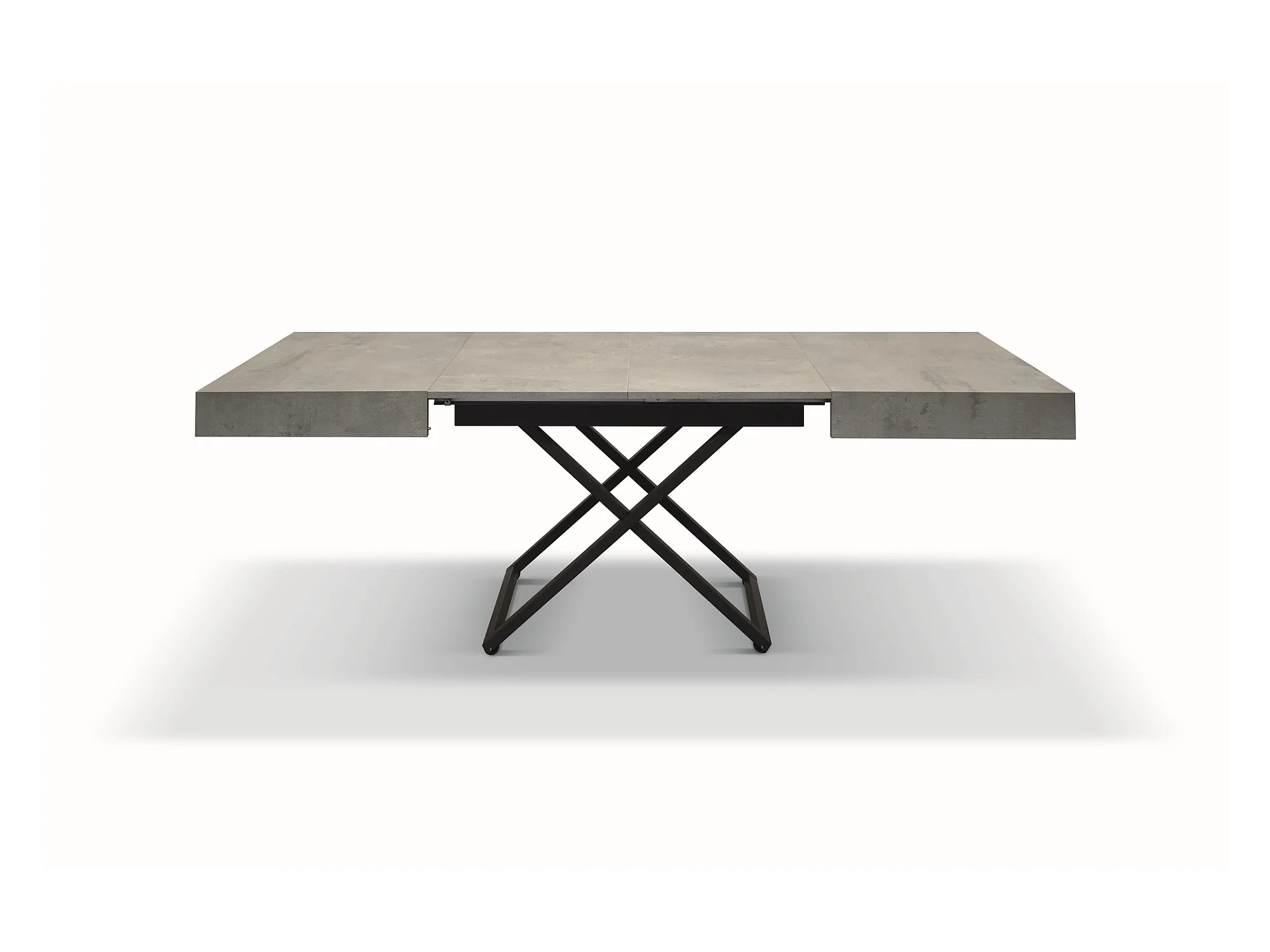 Table en bois, finition gris ciment, base anthracite, extensible 140x90 - FORTE DEI MARMI