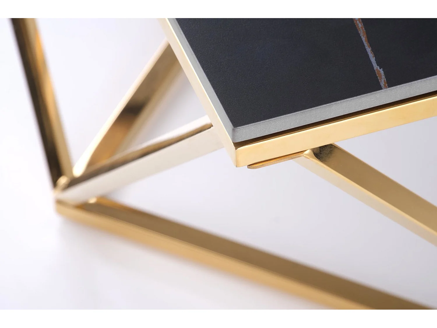 Table basse Felicia / acier fritté et inoxydable / noir et or