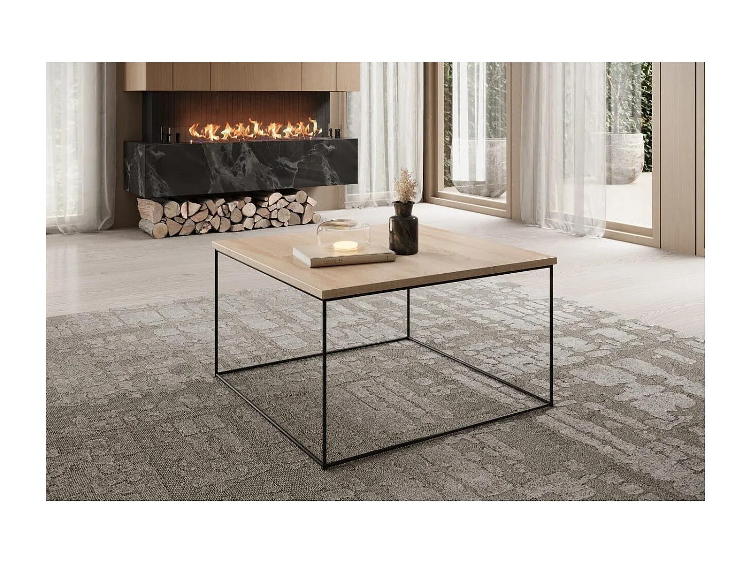 Table basse Joni/contreplaqué et métal/noir&Sonoma