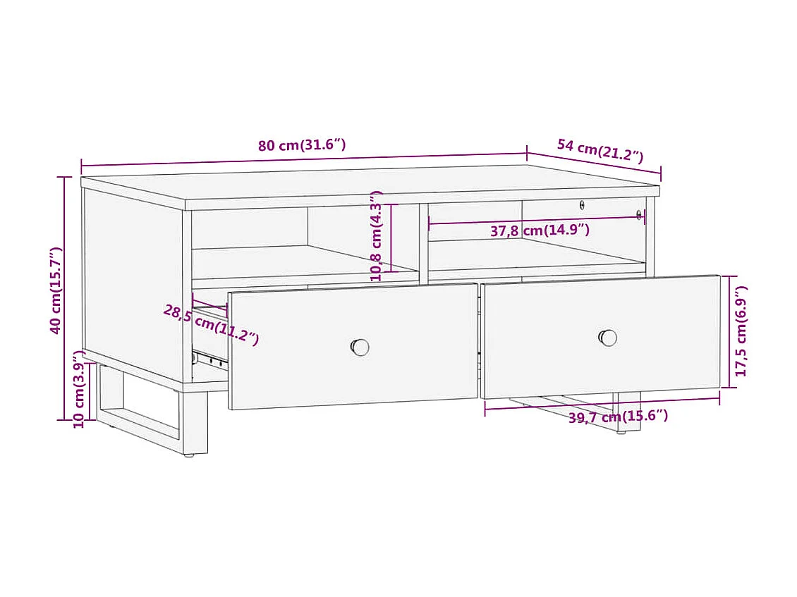Table basse marron et noir 80x54x40 cm bois de massif manguier