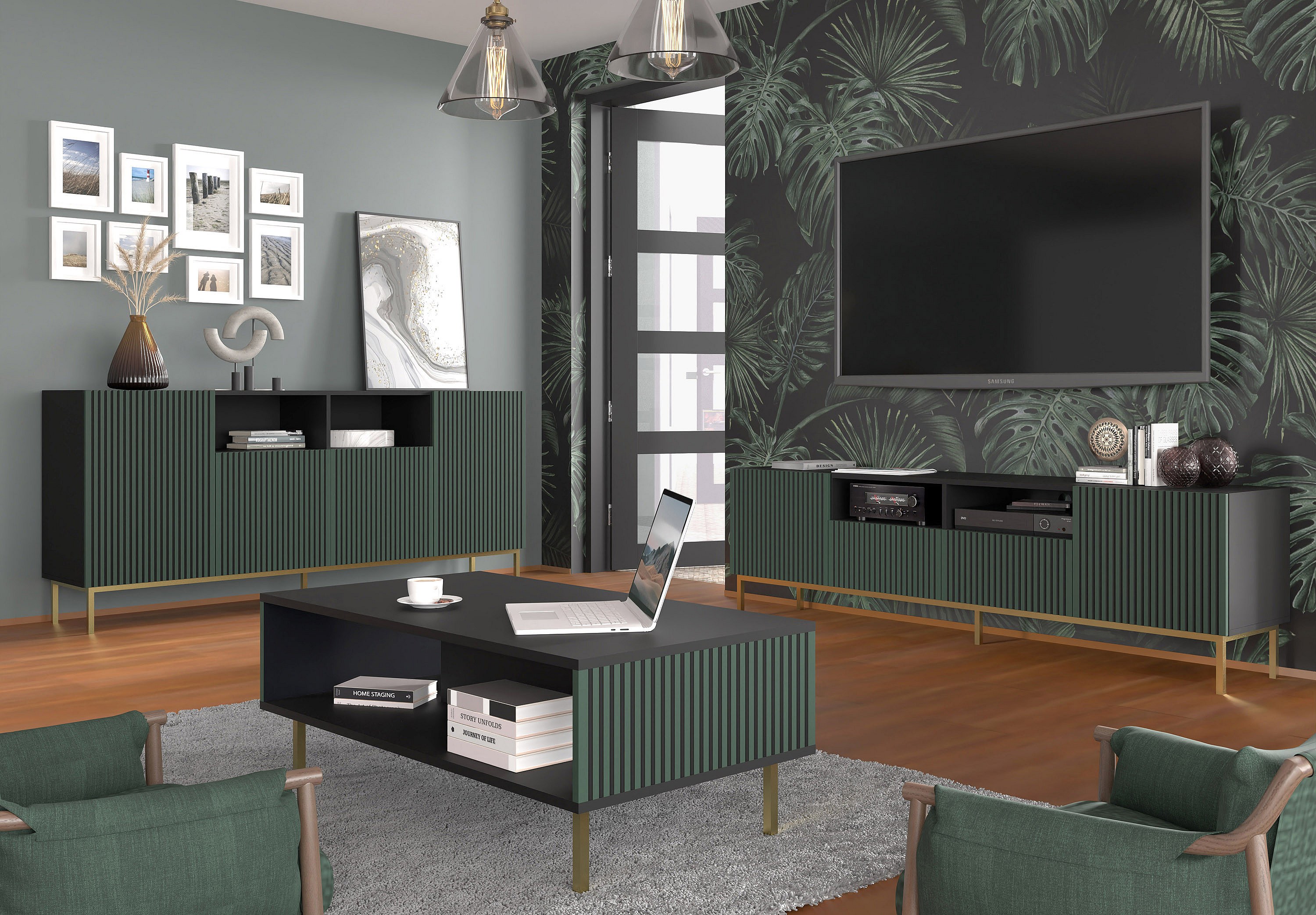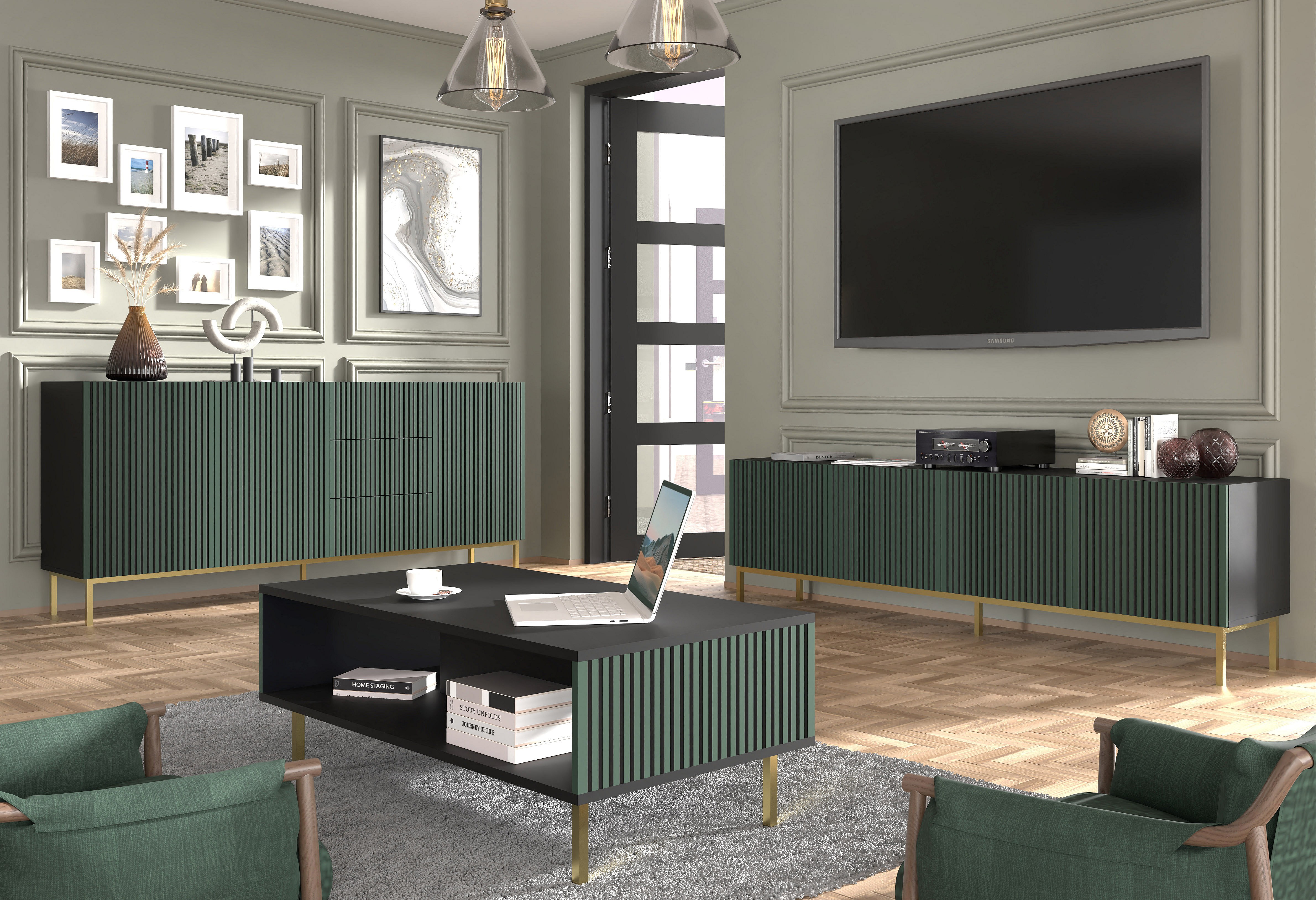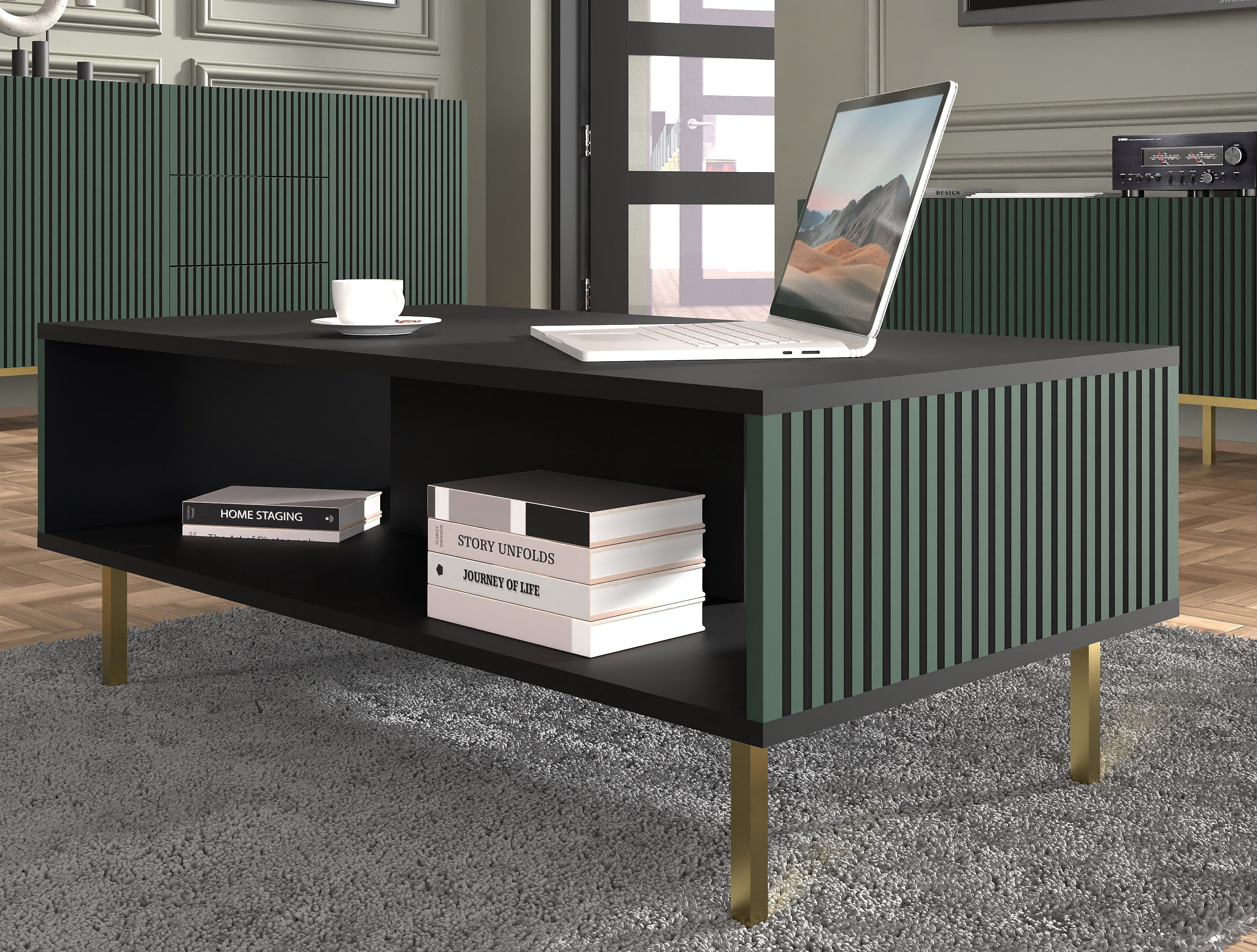 Table basse RavennaF 90x60x45 Noir & Vert & Doré