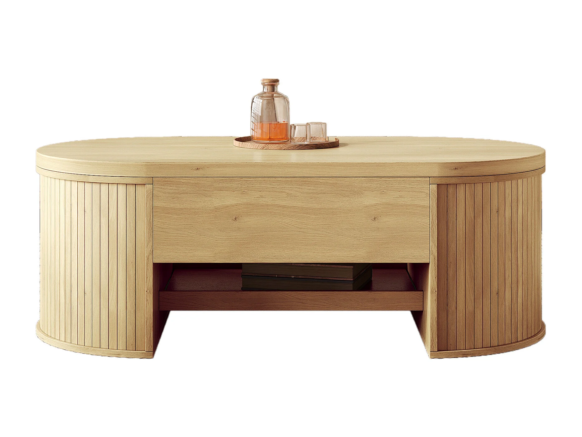 Table basse relevable - 110 x 55.5 x 40 cm - avec étagère extensible + plateau relevable - MDF - naturel