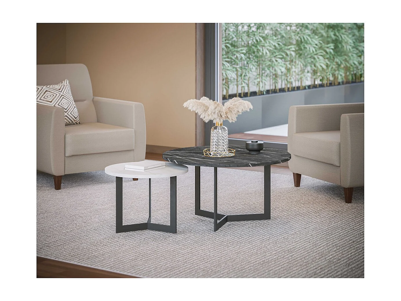 Table Basse Regan-Set/MD/métal /Noir&Marbre
