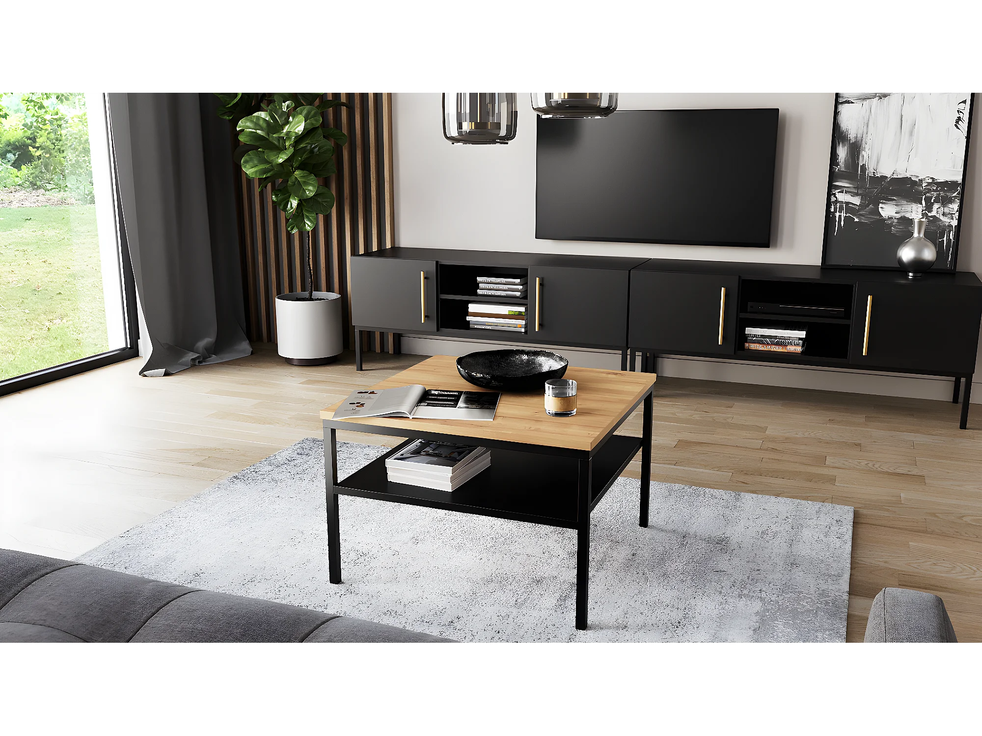 Table basse - 4 tiroirs - espace de rangement en bas - 78x78x36cm - Naturel