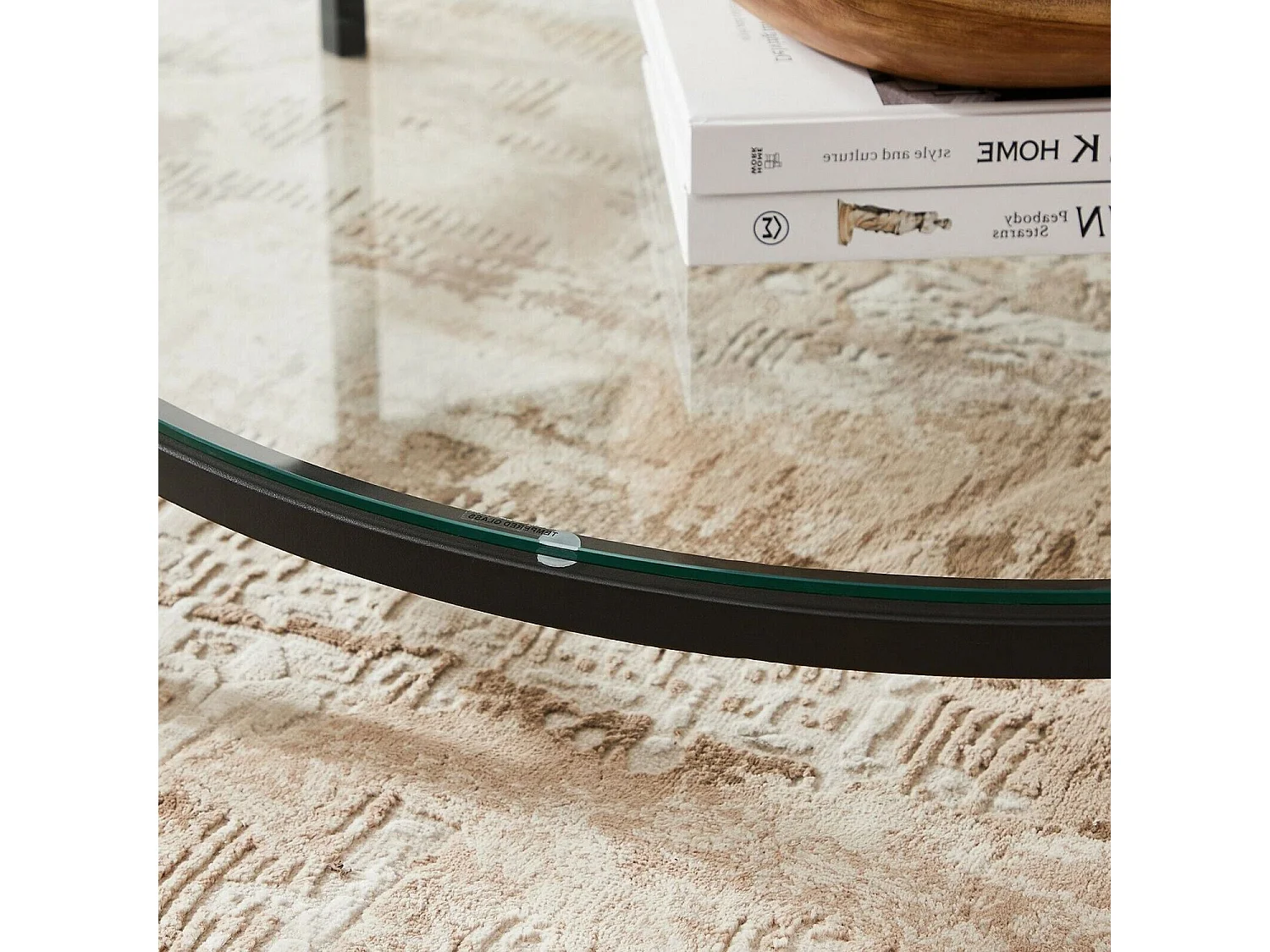 Table d'angle ronde en verre trempé et noyer 2036 ANGEL CERDA