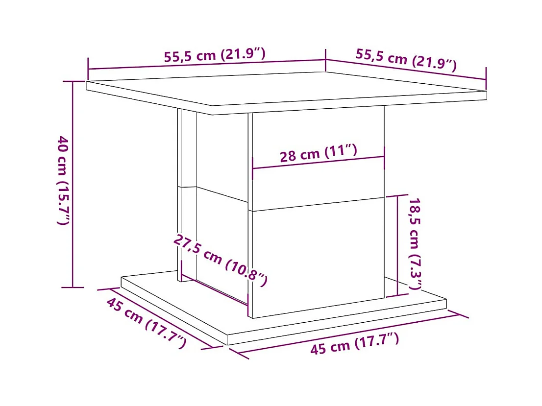 Table basse chêne marron 55,5x55,5x40 cm bois d'ingénierie
