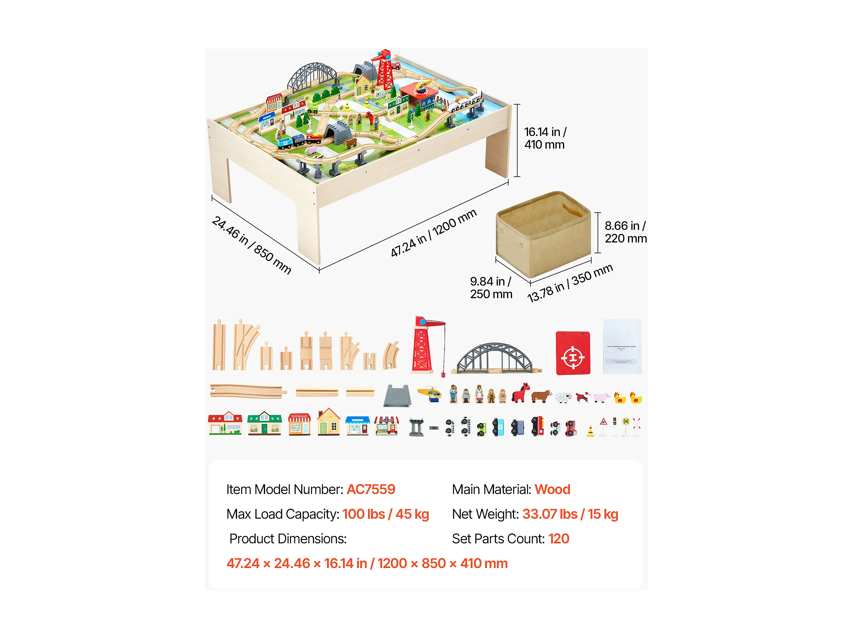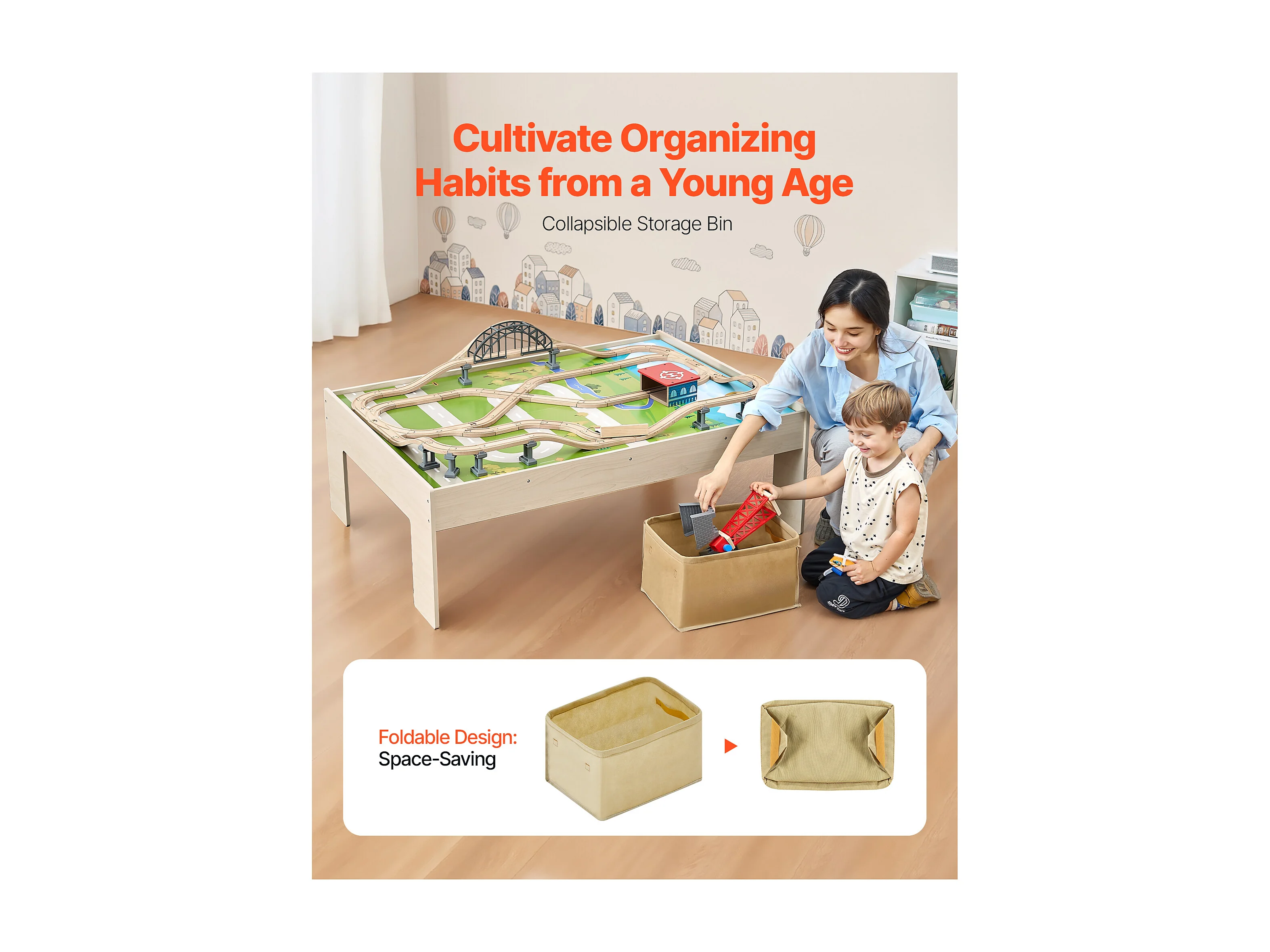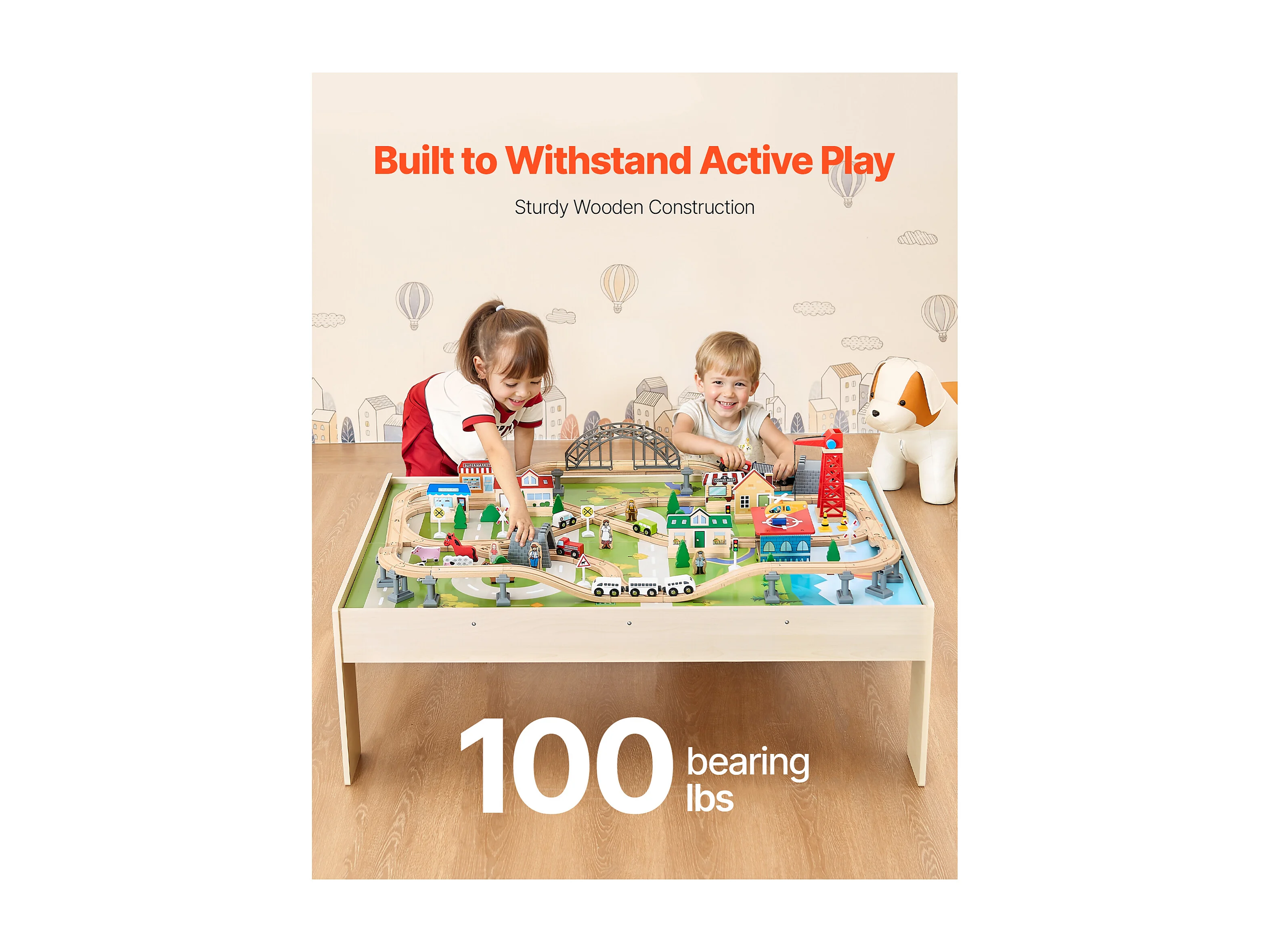 Table Circuit Train Bois SucceBuy, 120 PCS, avec Rail de Train, Table d'Activités 3 en 1 Double Face pour Jouer, Jouets Créatifs pour Enfants 3 Ans et Plus