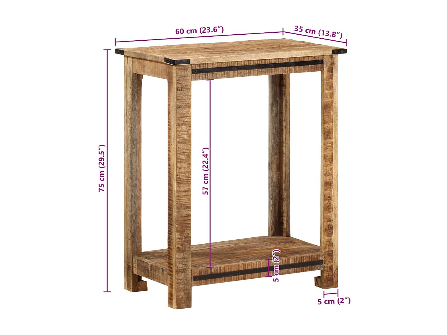 Table console 60x35x75 cm bois massif de manguier