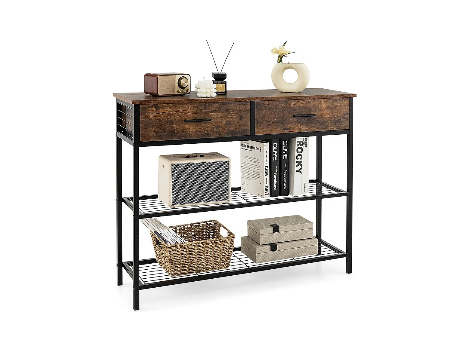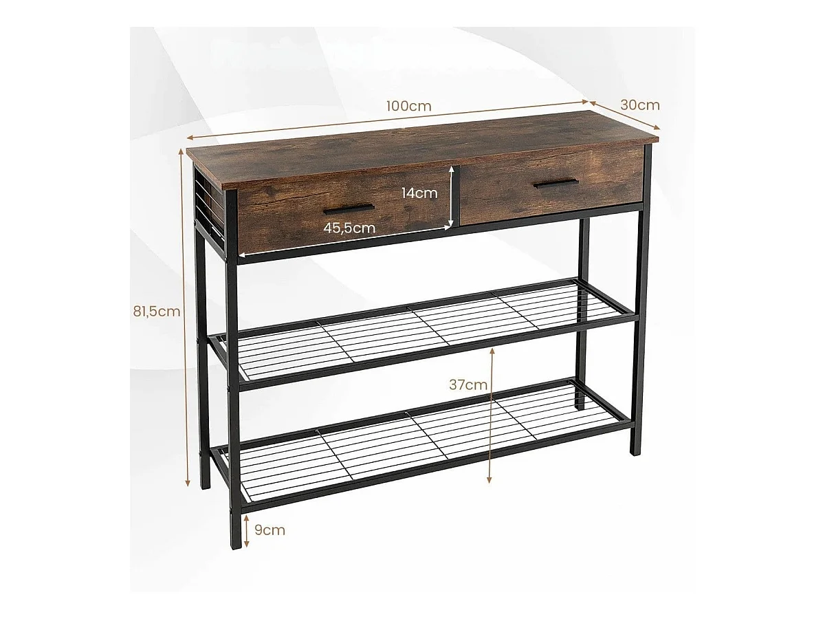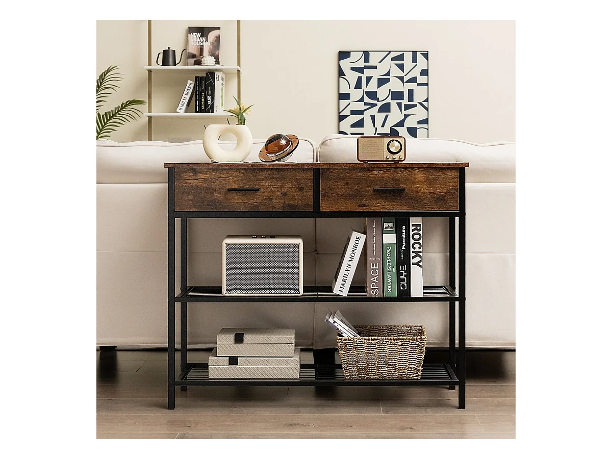 Table Console à 2 niveaux 2 Tiroirs 100 x 30 x 81,5 CM Style Industriel Cadre en Métal Meuble d' Entrée Café