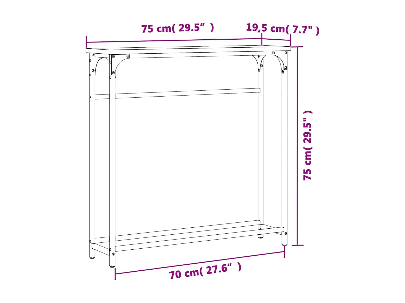 Table console chêne sonoma 75x19,5x75 cm bois d'ingénierie