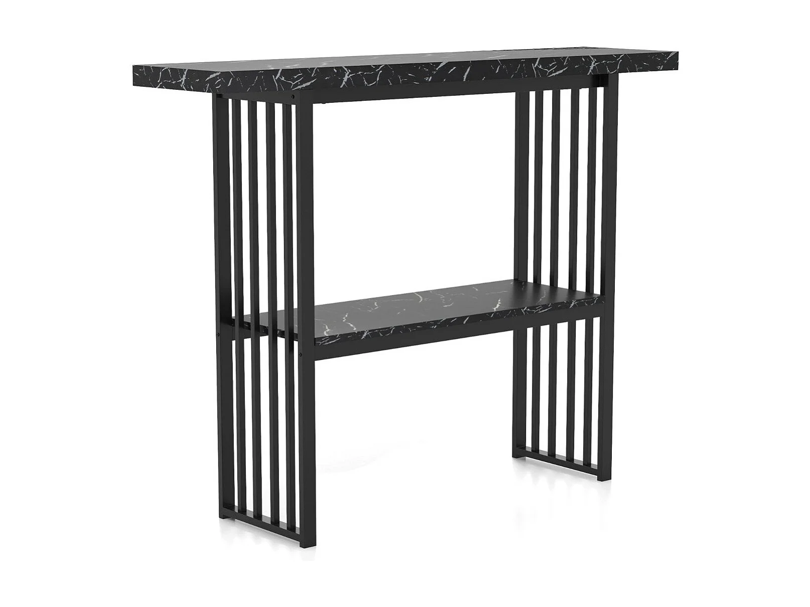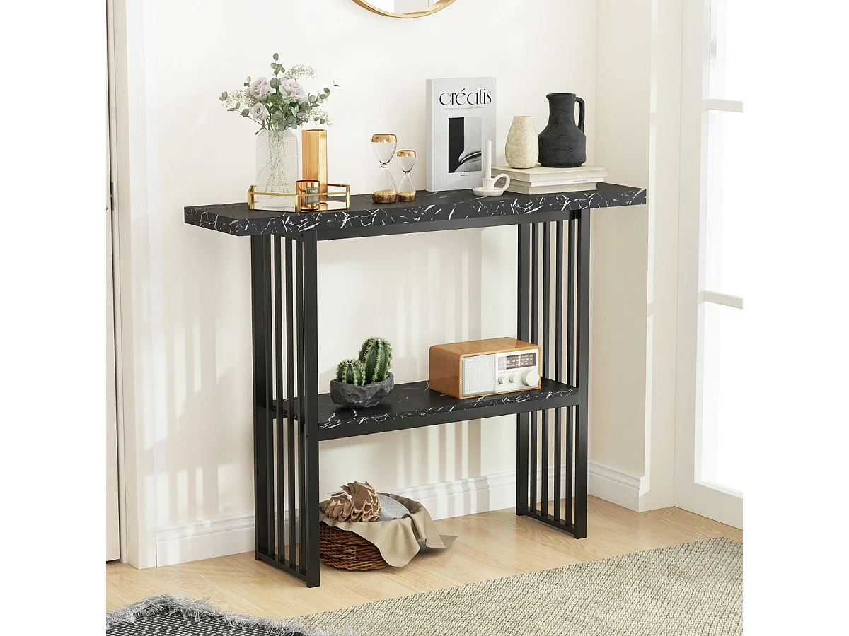 Table Console Effet Marbre 2 Niveaux 120 x 29,5 x 92,5 cm (L x l x H) Cadre en Métal Style Scandinave Noir