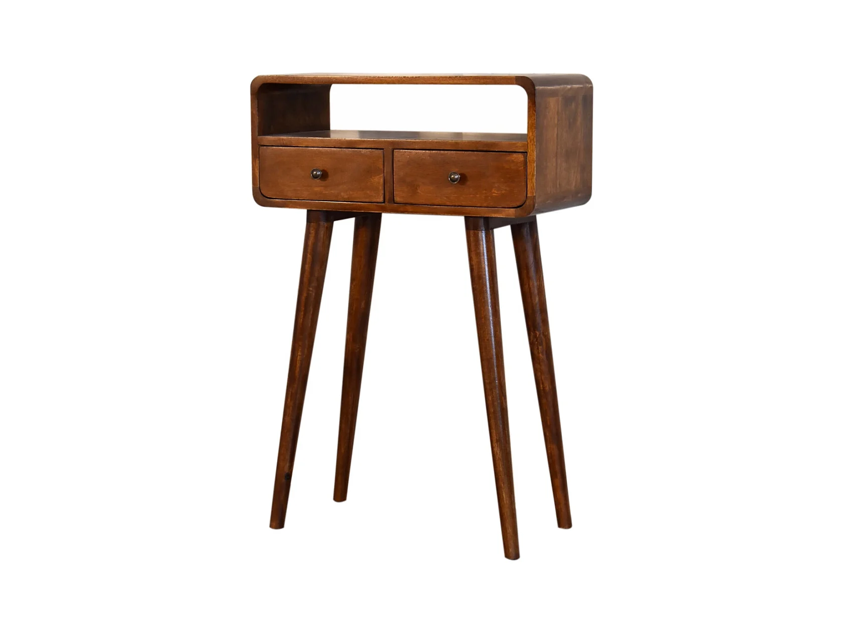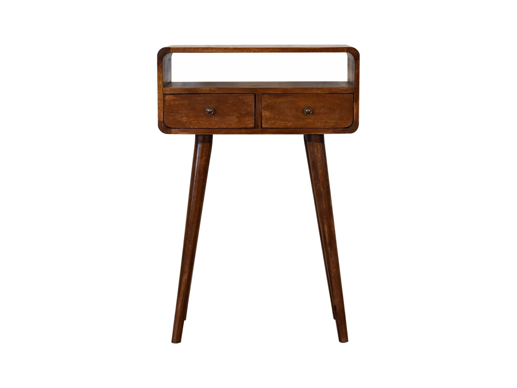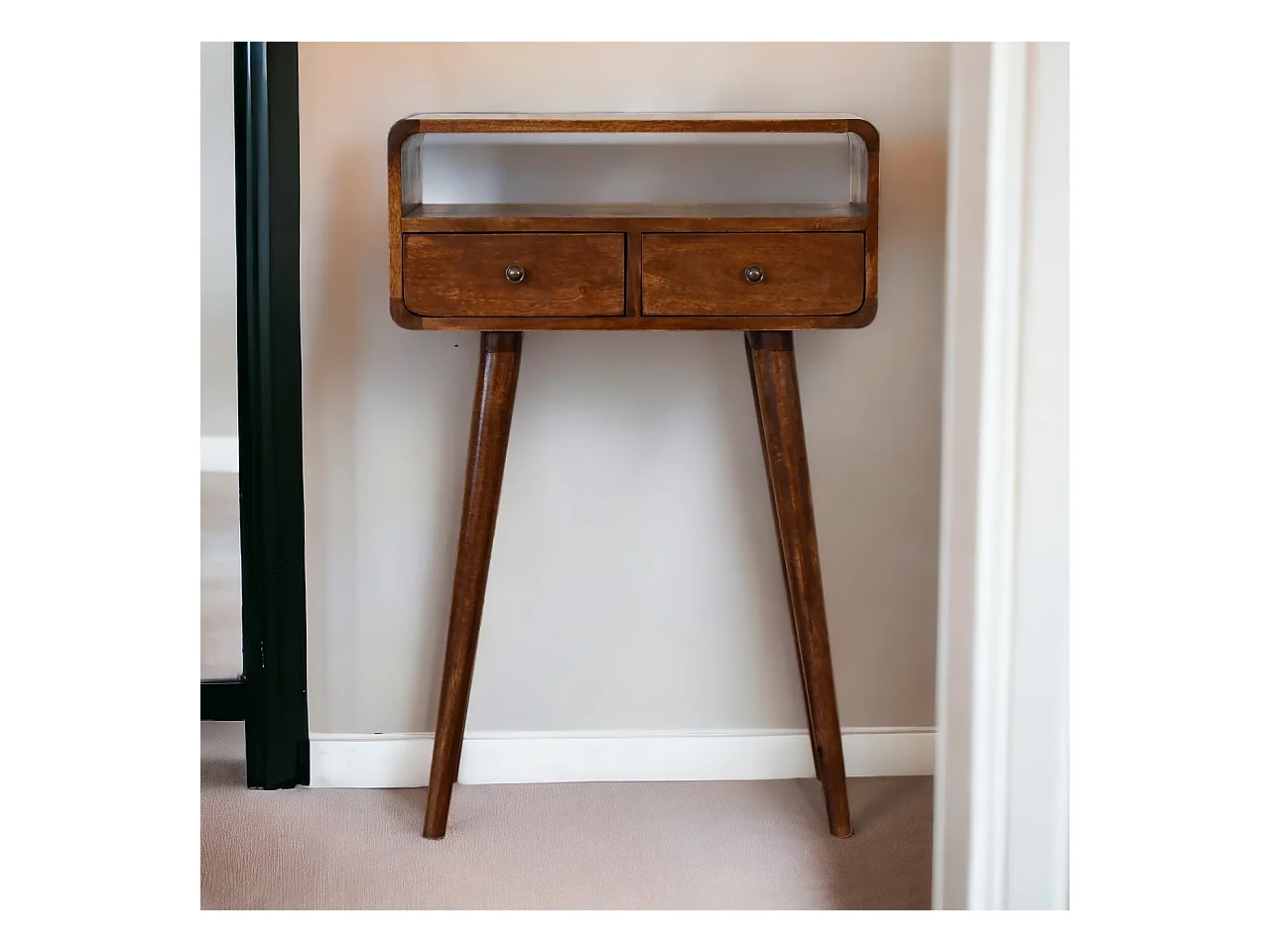 Artisan Furniture Console Courbée en Châtaignier, 2 Tiroirs et Niche Ouverte, Brun Foncé