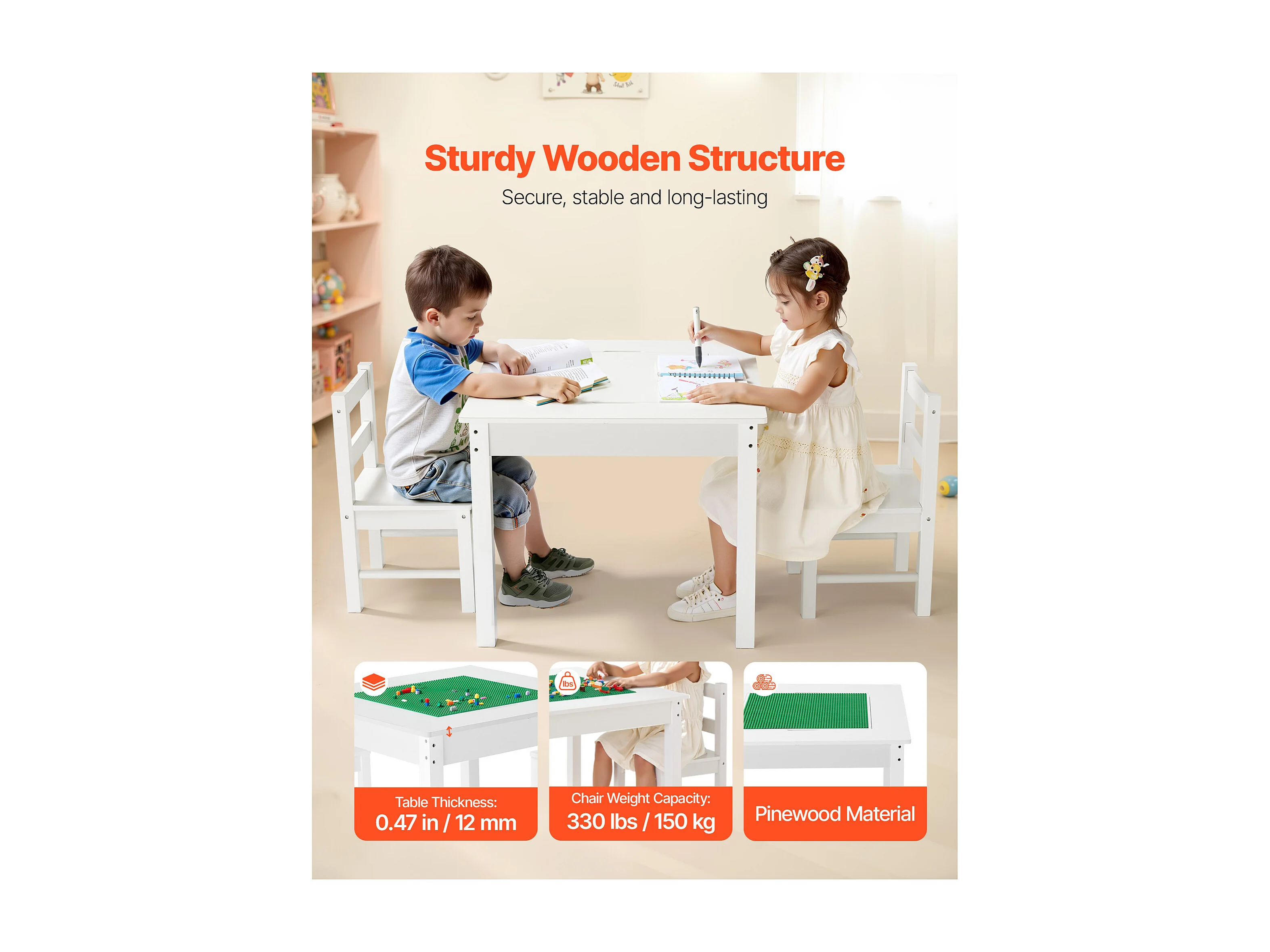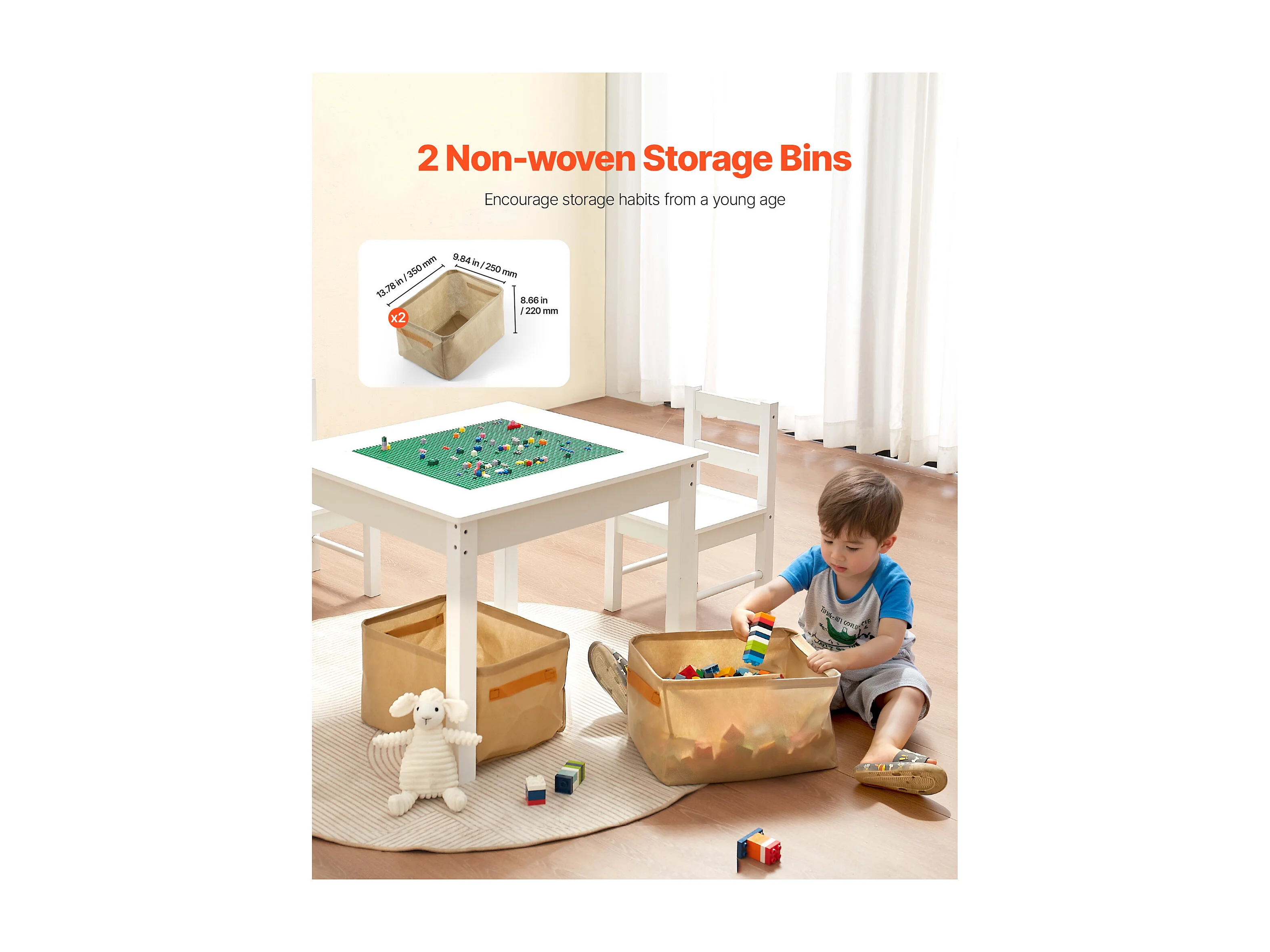 Table d'Activités SucceBuy pour Enfants avec 2 Chaises, Table de Jeu Multifonction, avec Plateau Double Face en Blocs de Construction, Grand Espace de Rangement
