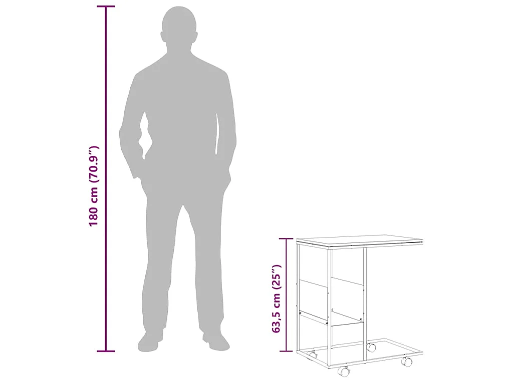 Table d'appoint avec roues noir 55x36x63,5 cm bois d'ingénierie