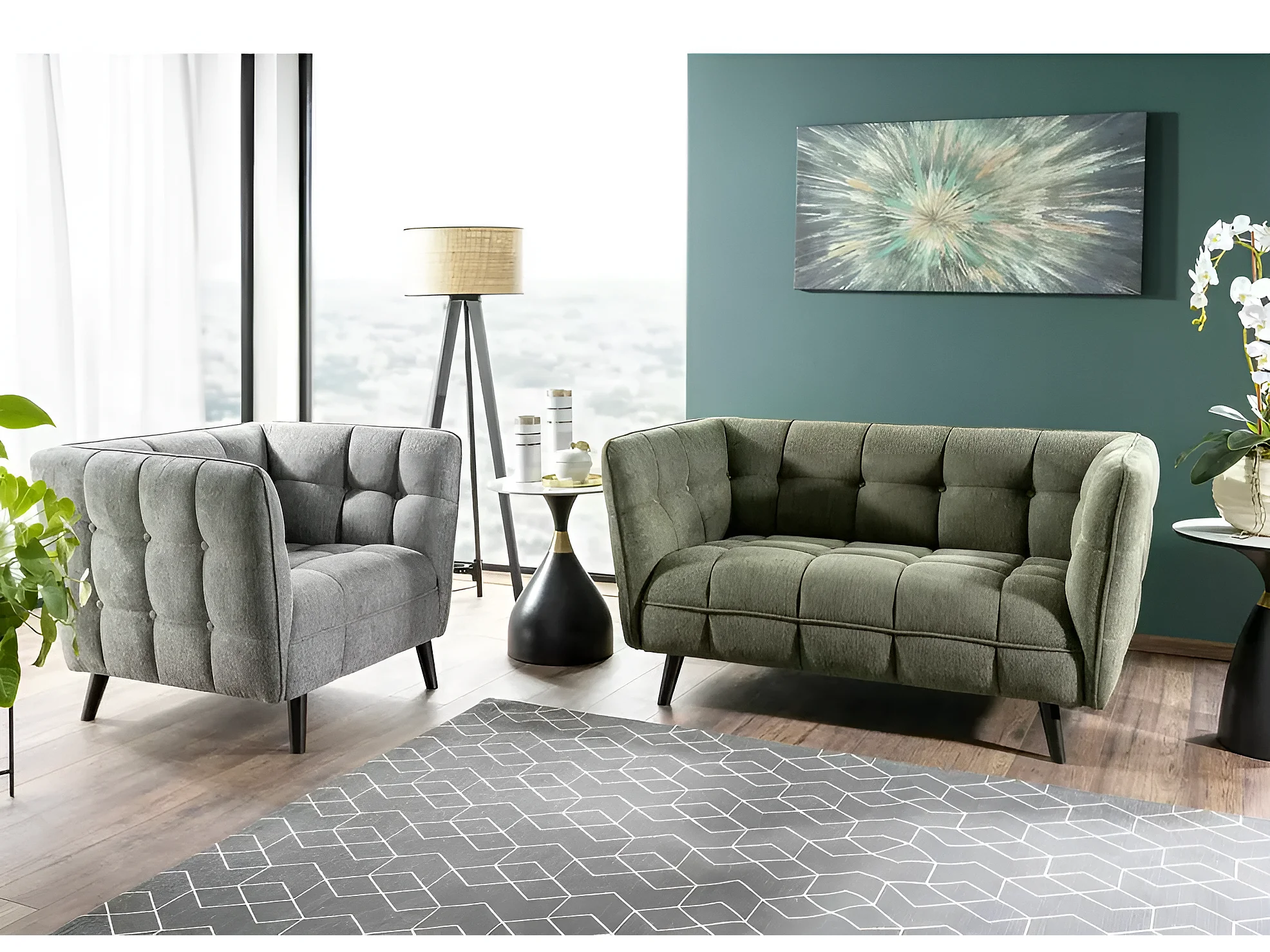 Tabouret bas en velours et métal doré - Bleu - ESMEA